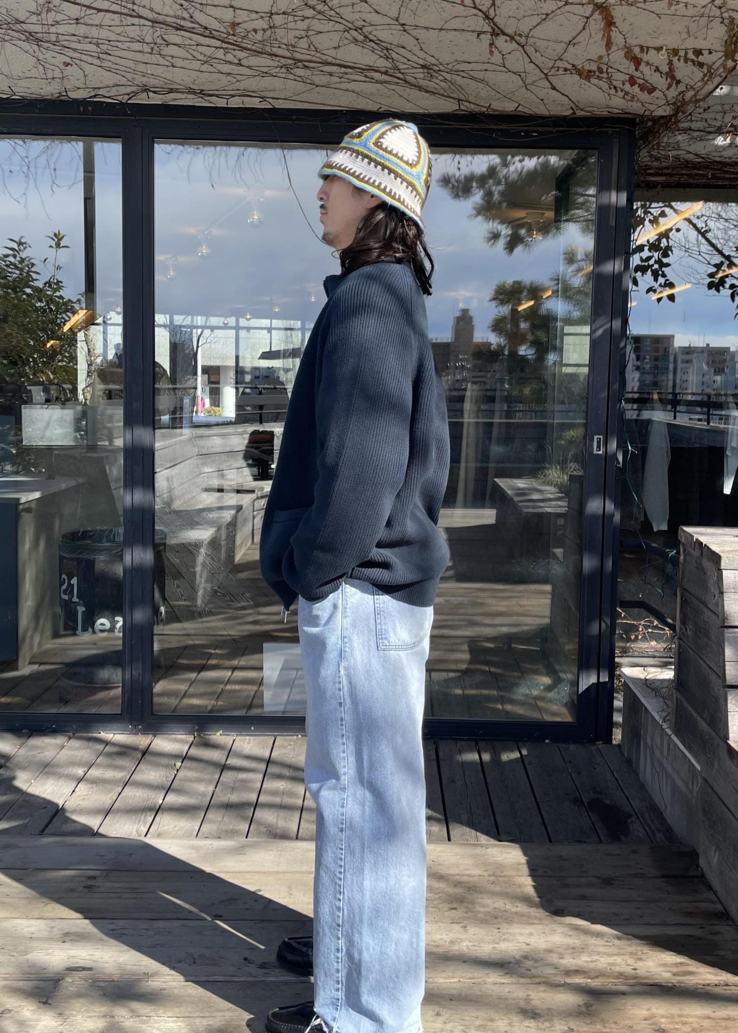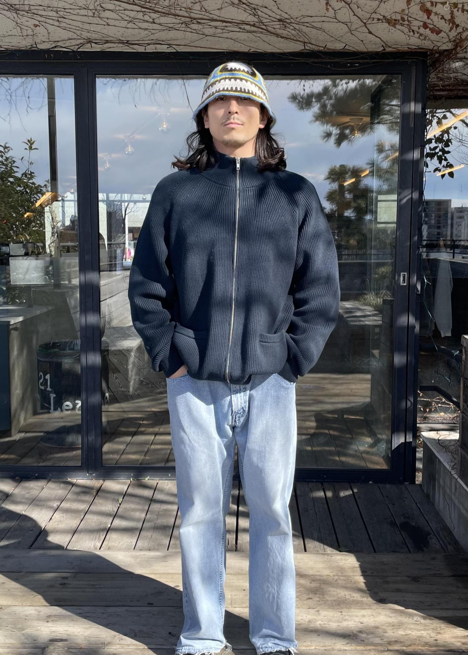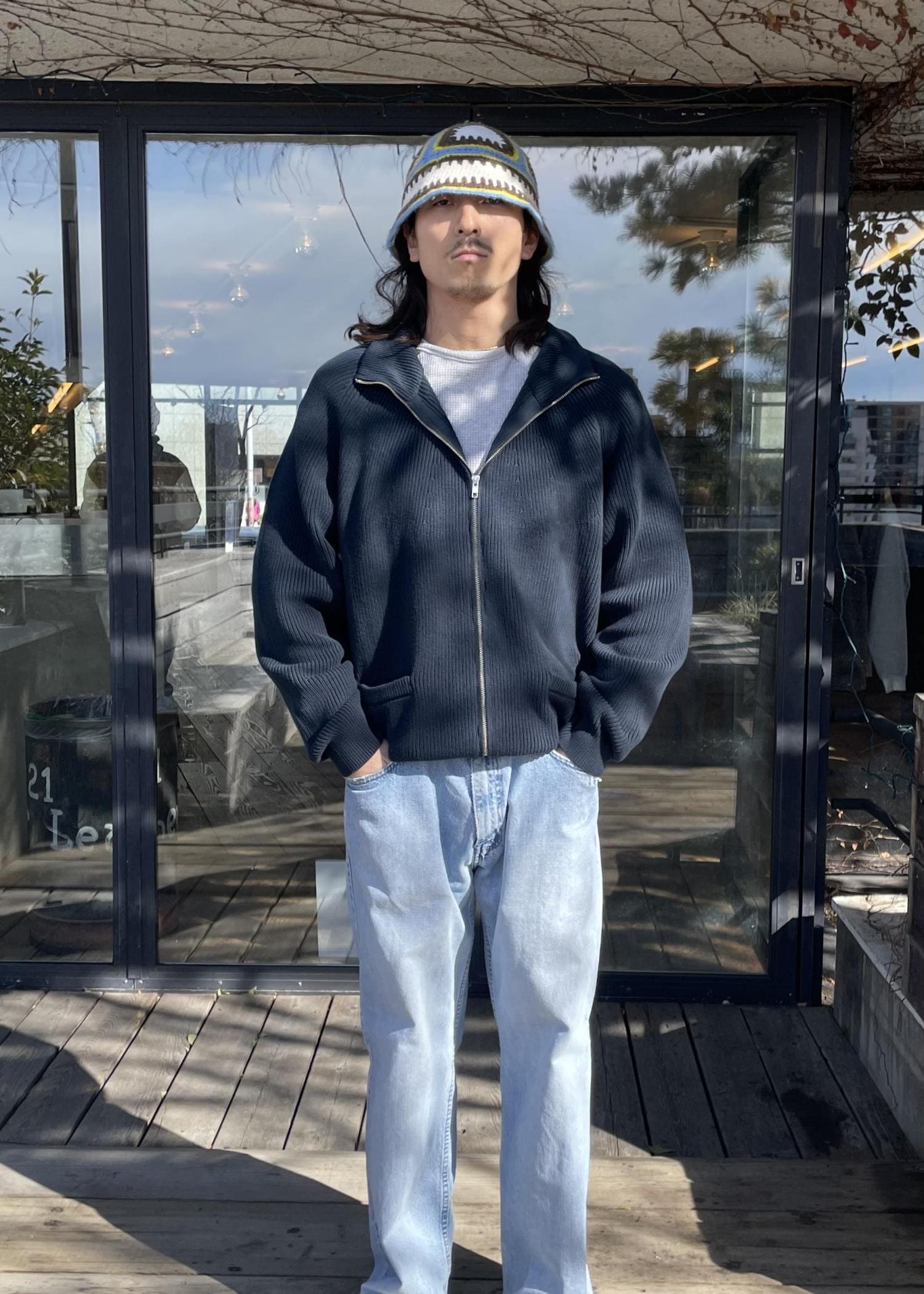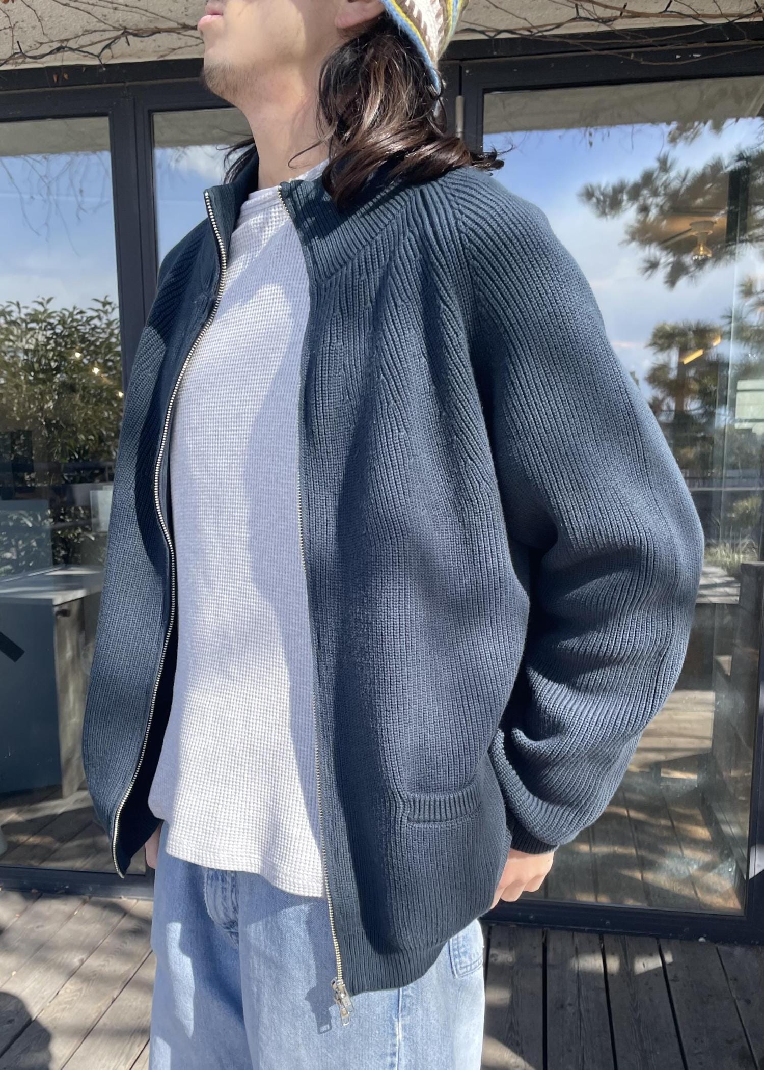 トップスは、フルジップのニットジャケットです!