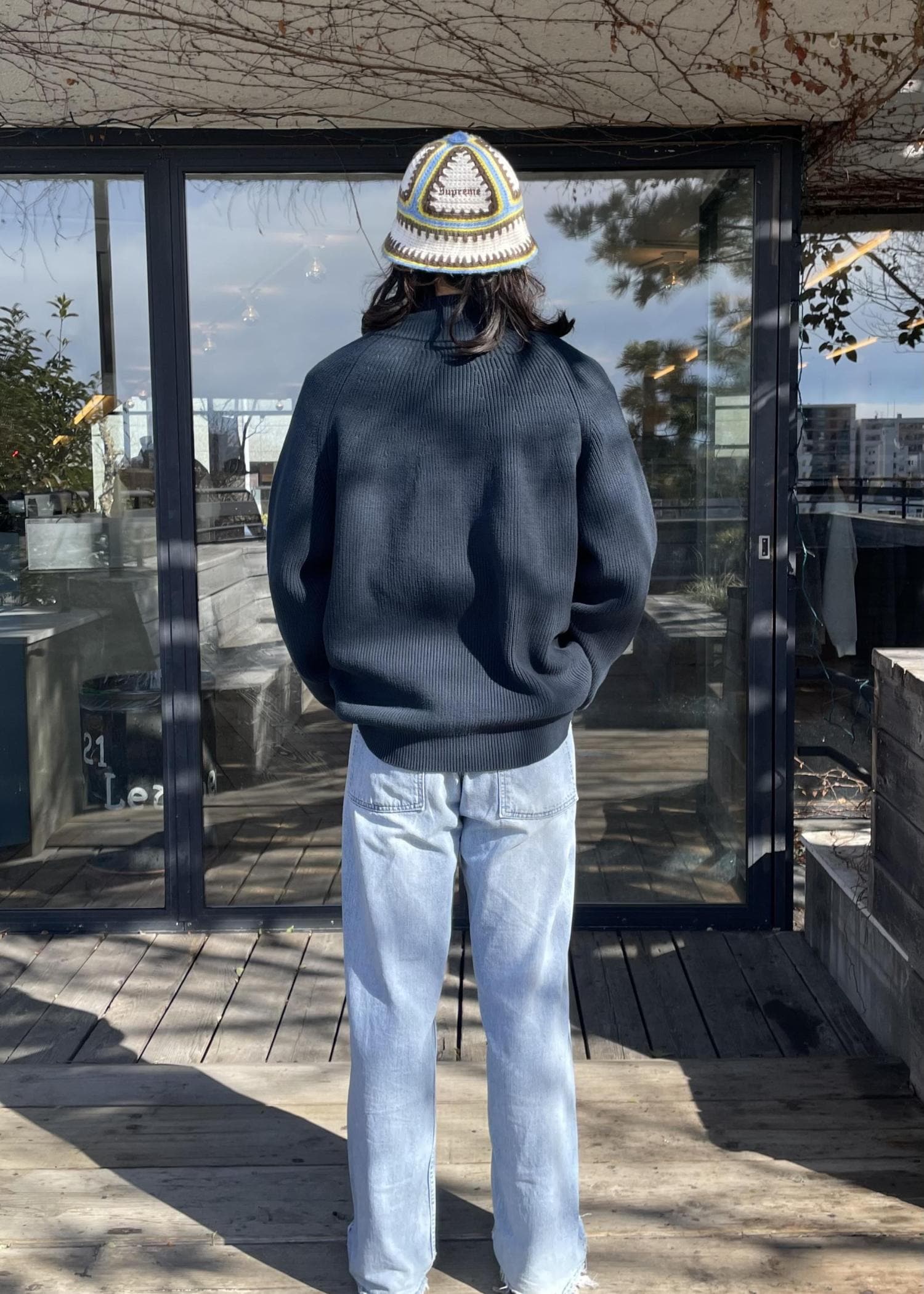 色も濃い綺麗なブルーなので、1番上で着ても重ね着でレイヤーとして着てもスタイリングに取り込みしやすい一品です!
