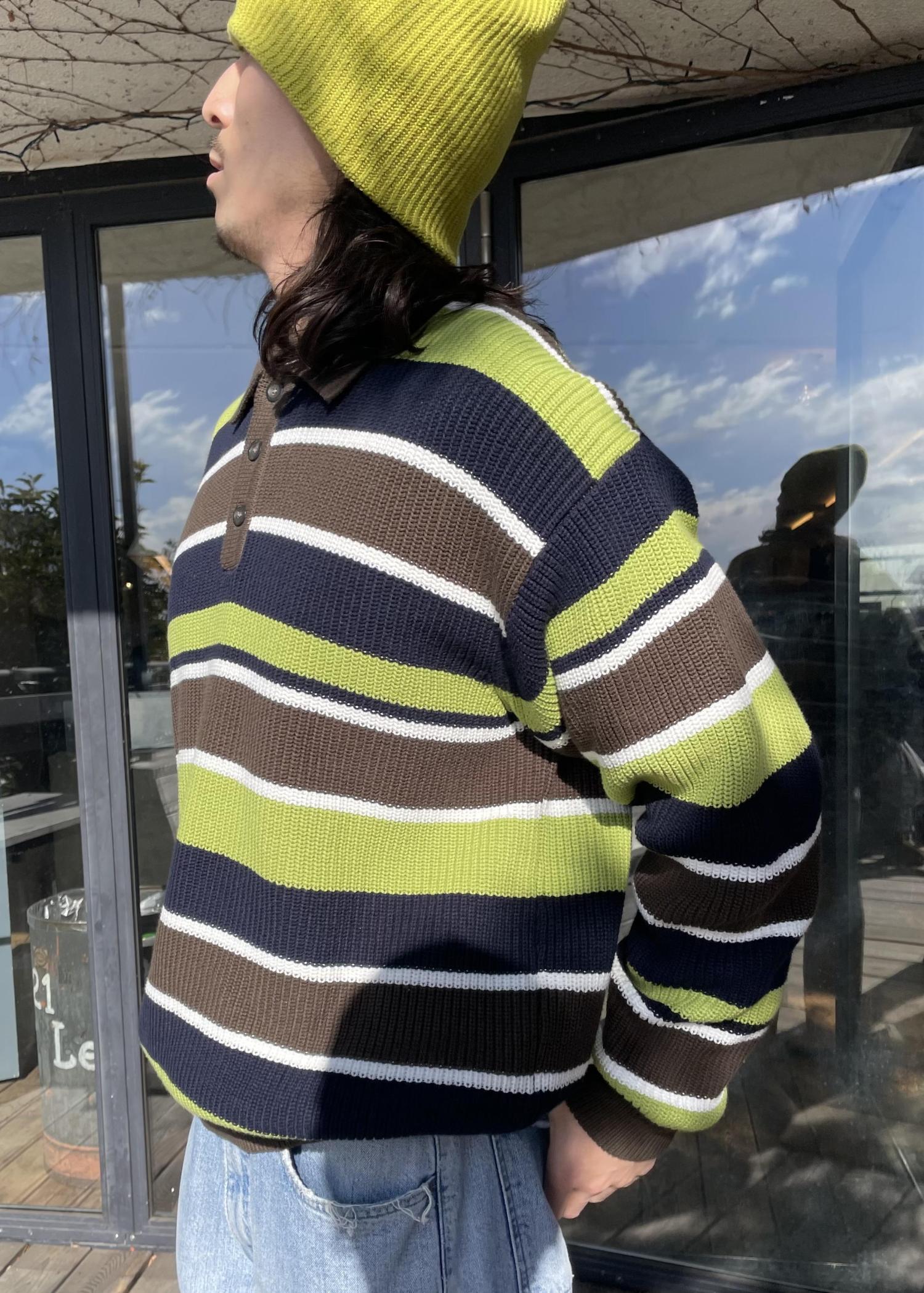 Saturdays NYCBeauchamp Multi Stripe Polo Sweaterオリーブ / L¥12,650