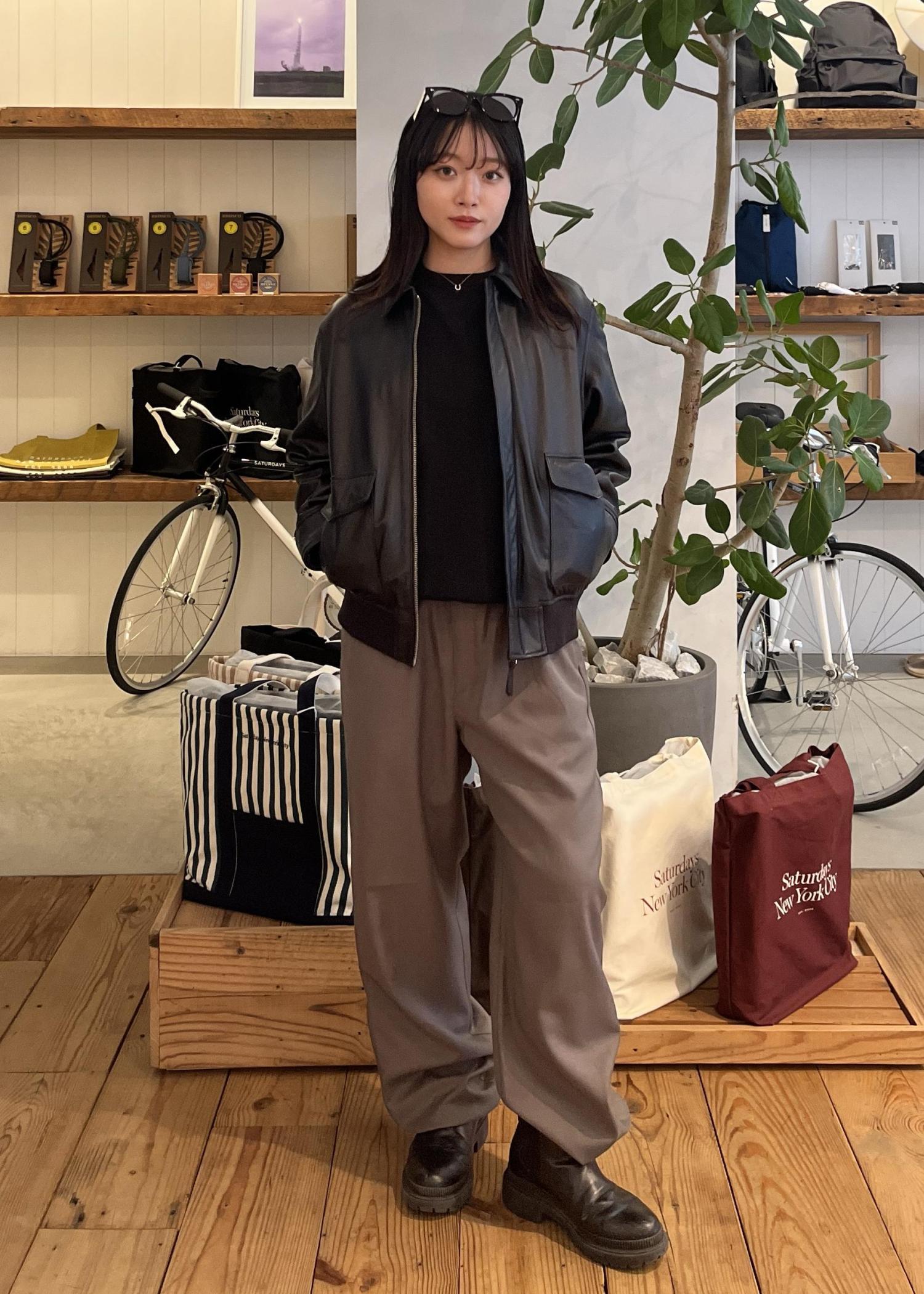 同素材のトップスもあるのでセットアップ対応も可能です。