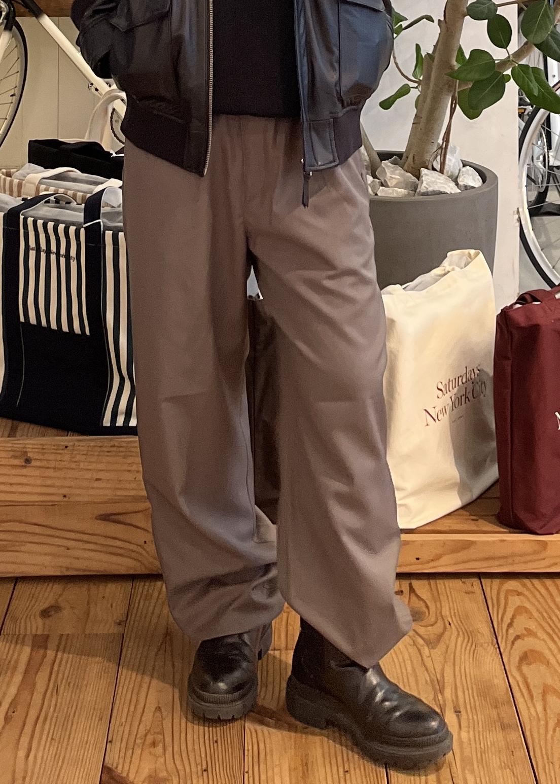 このパンツは、ウールブレンドのポリエステル素材(TW)を使用しており、適度なハリと落ち感が綺麗なアイテムです!