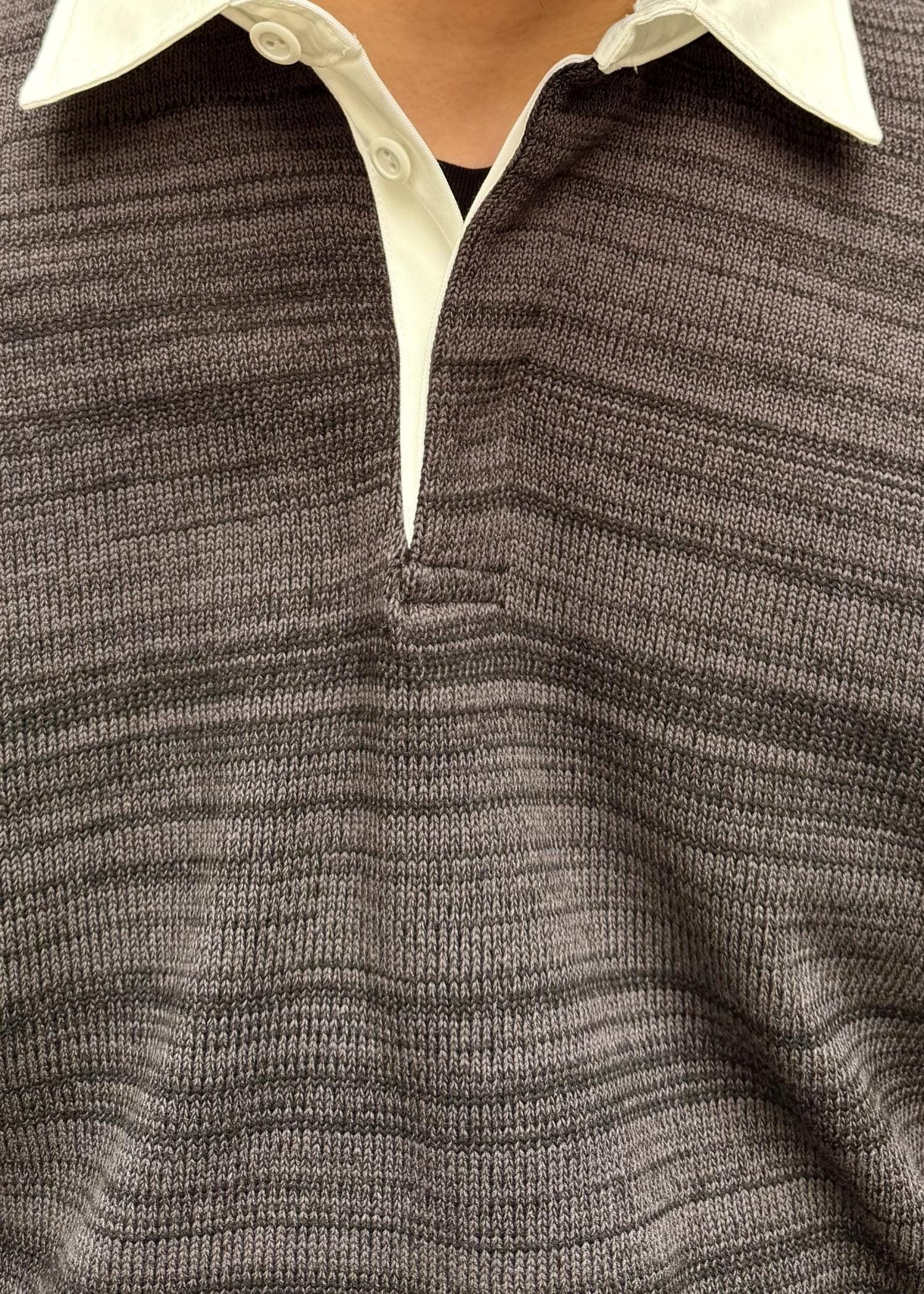 インナーで新作のニットポロを合わせてアダルティーさをプラス。