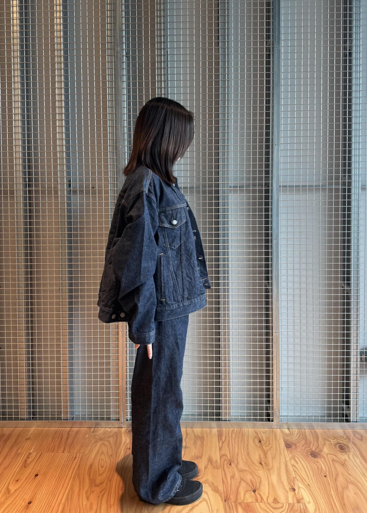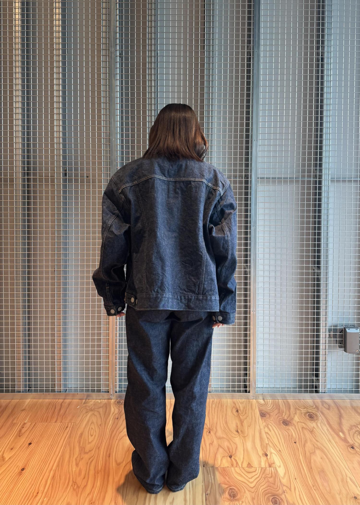 岡山県で加工した13オンスのムラ染めデニムを使用し、軽やかさと表情のある風合いを両立しています。