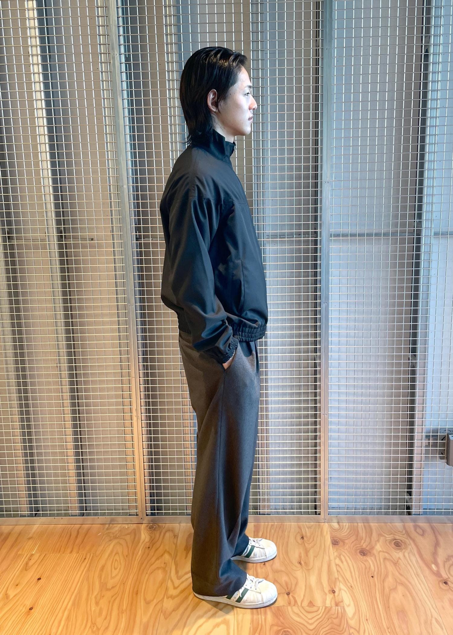 トレーニングジャケットをベースに、梳毛系の綺麗な素材を活かしたシンプルで繊細さがうかがえるデザインとややゆとりを持たせた大人のサイズバランスは上品な印象なアイテムです!!