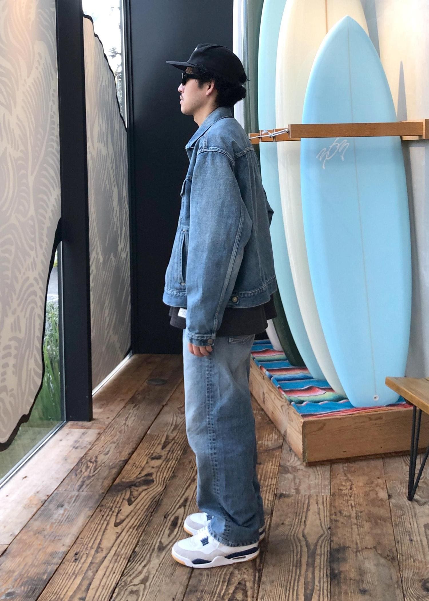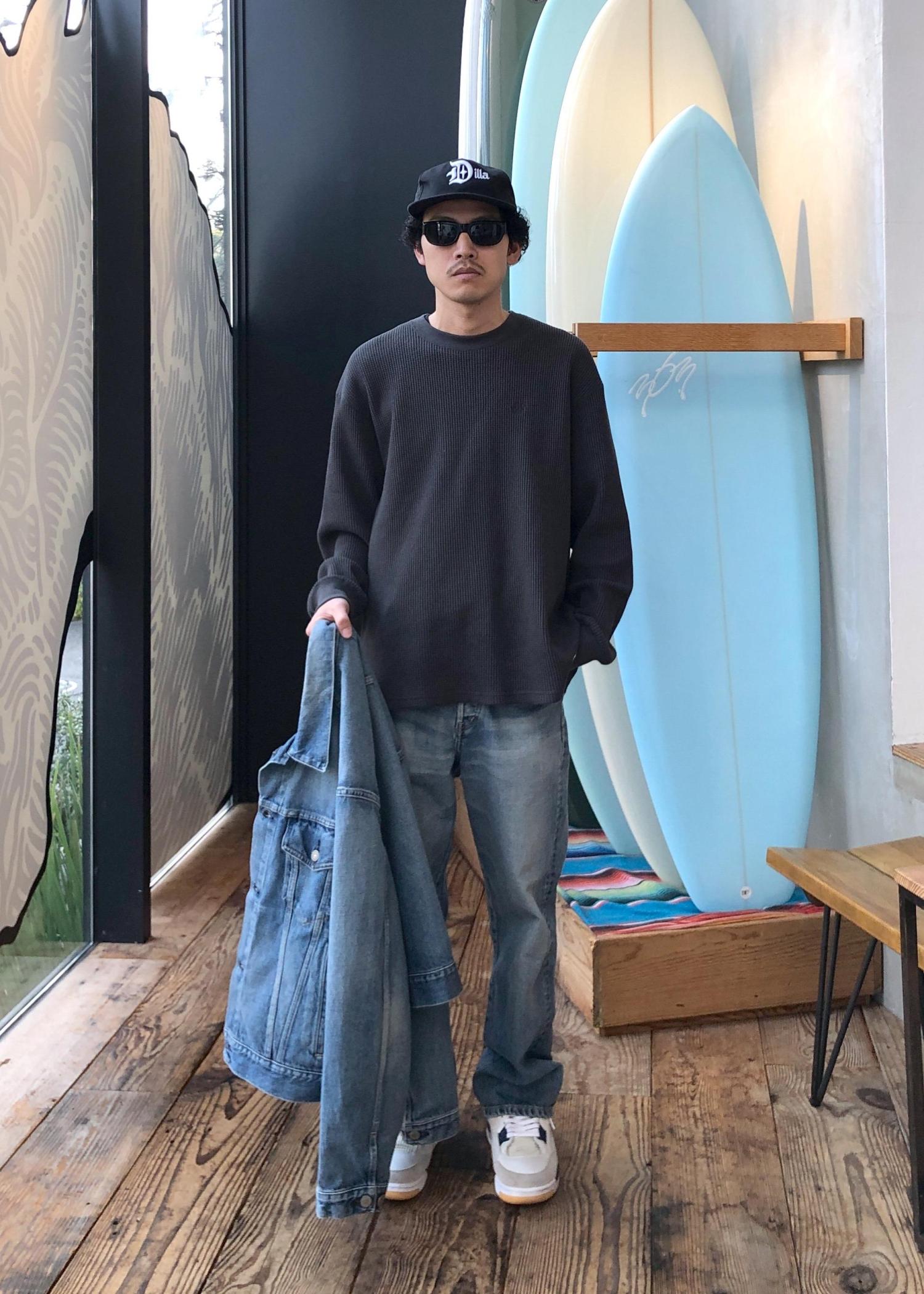 日本製のデニムセットアップに、日本製のサーマルをイン。