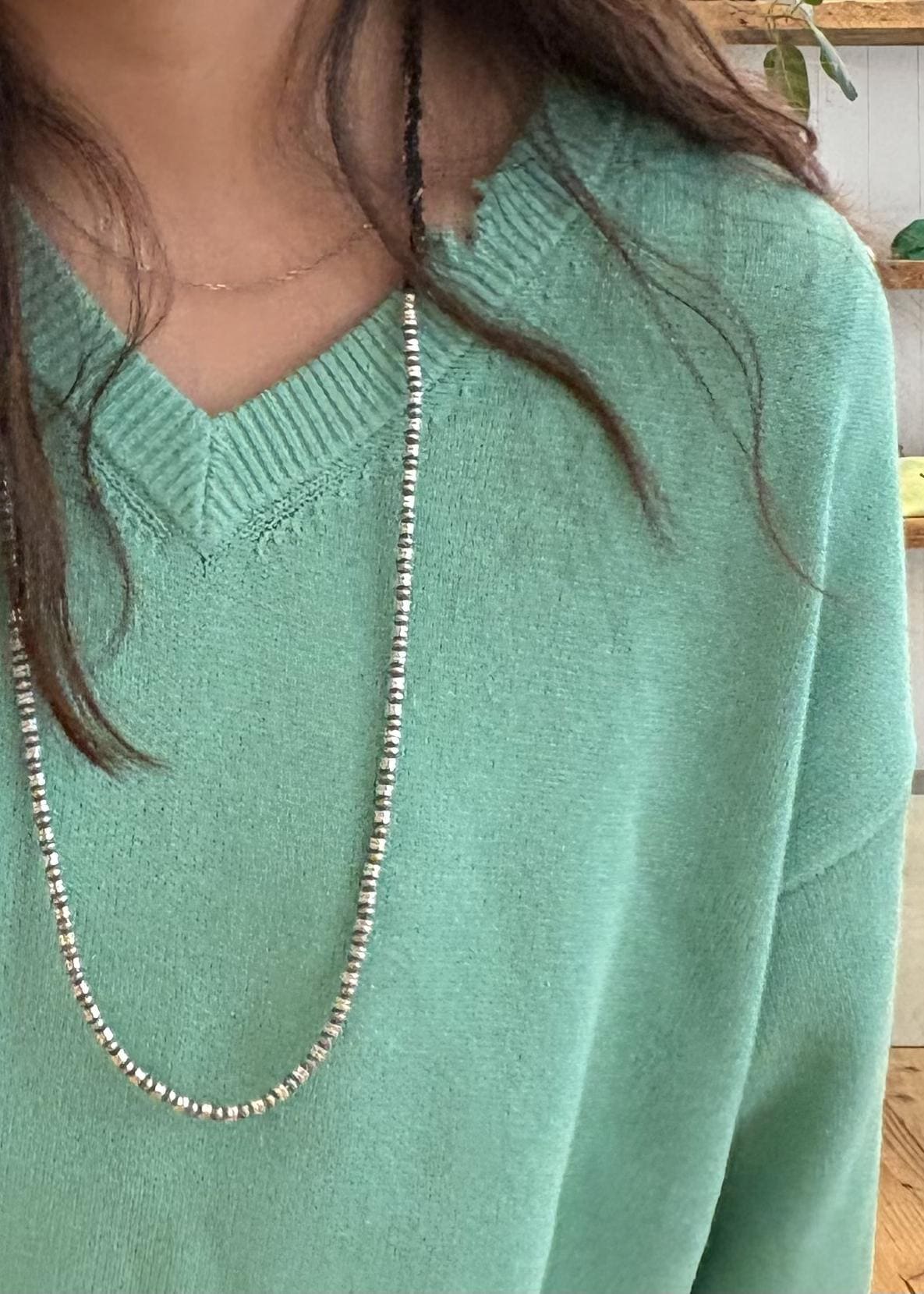 NEW!Saturdays NYCCharles Vintage V-Neck Sweaterターコイズ / M¥24,200レビュー程よいダメージ加工にVネックで、ざっくりしたゆるさで、リラックスしてきていただけます。女性らしさも持たせつつであれば、Vネックで、首周りはすっきり見せて。男性はMax weghtのオフホワイトロンTをインナーにはさむのもおすすめ。