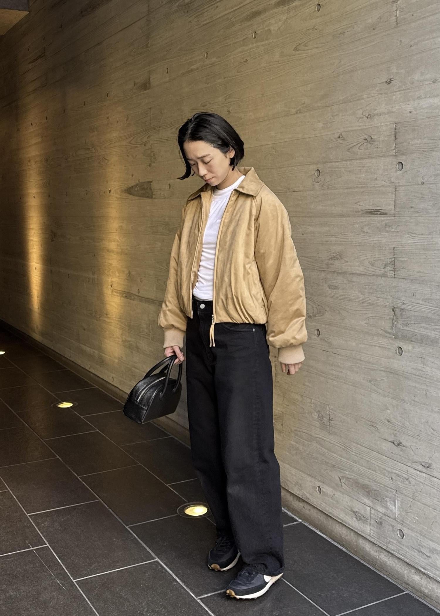 ボリュームのある素材が特徴のジャケットは軽くてスウェード感が楽しめるおすすめアイテムです。