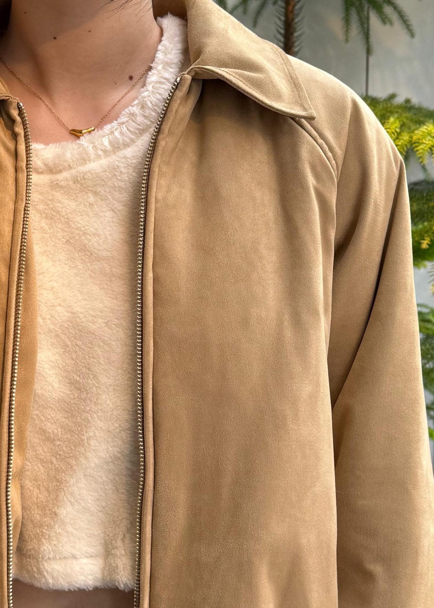 ファーライクな素材感がスタイリングのポイントに。オーガニック綿の自然な風合いが特徴で、ブラウンカラーは染色を施さず、綿本来の自然な色味を生かしたカラーです。