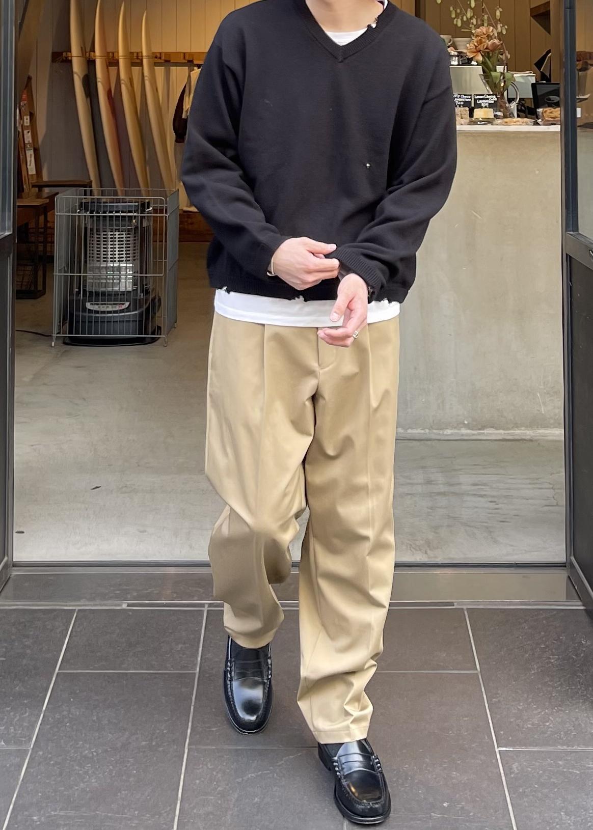 それに合わせたパンツは、定番になっているワンタックスラックスです!