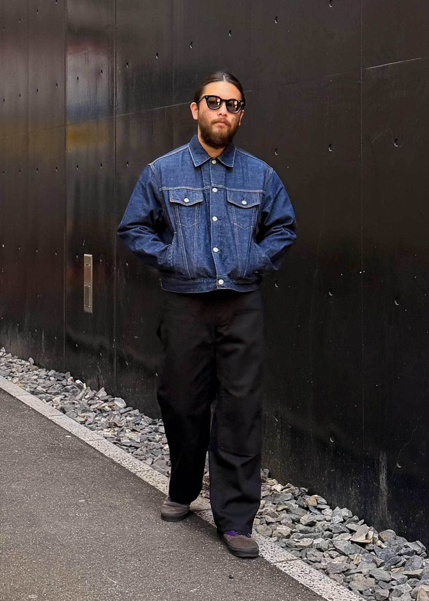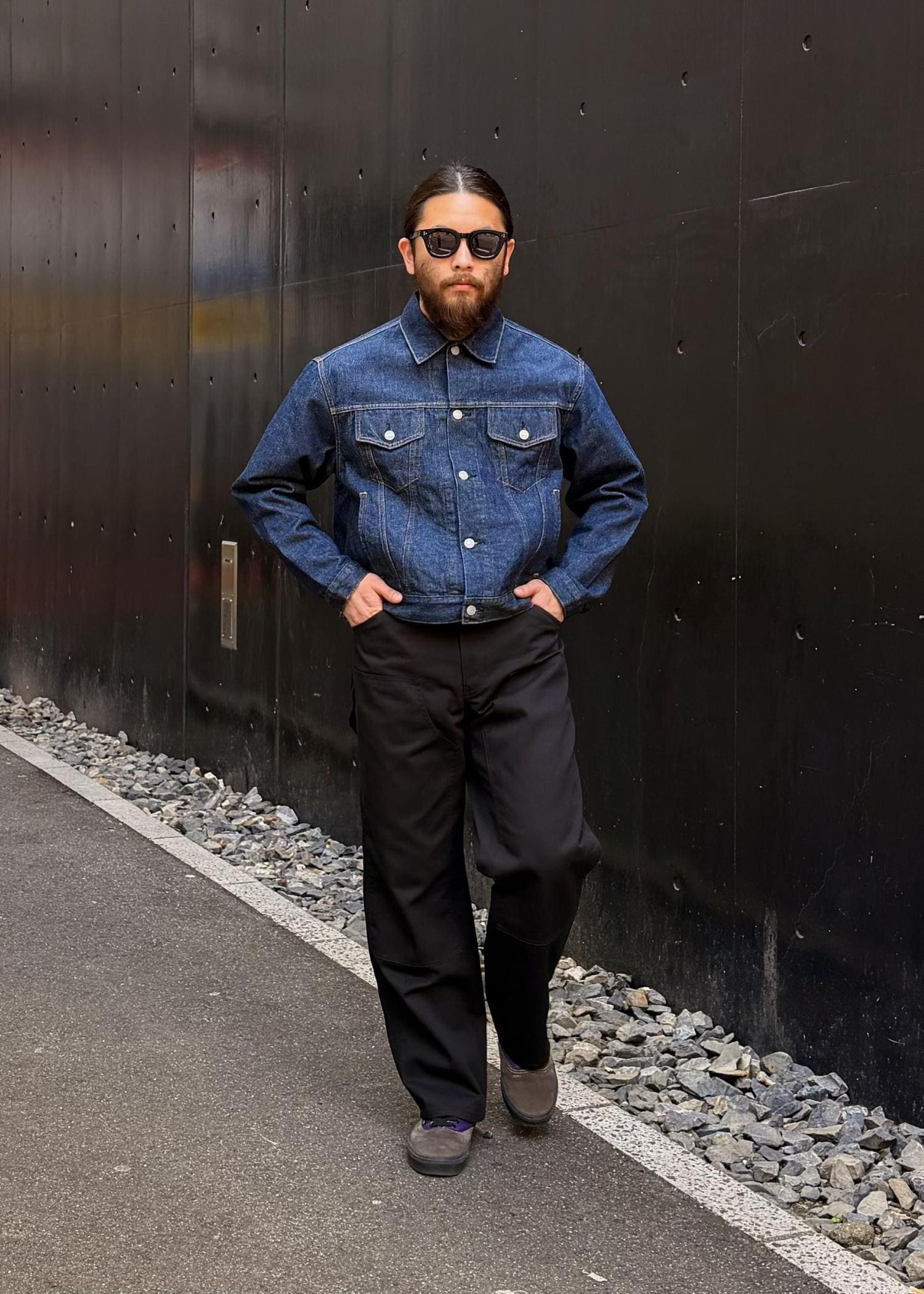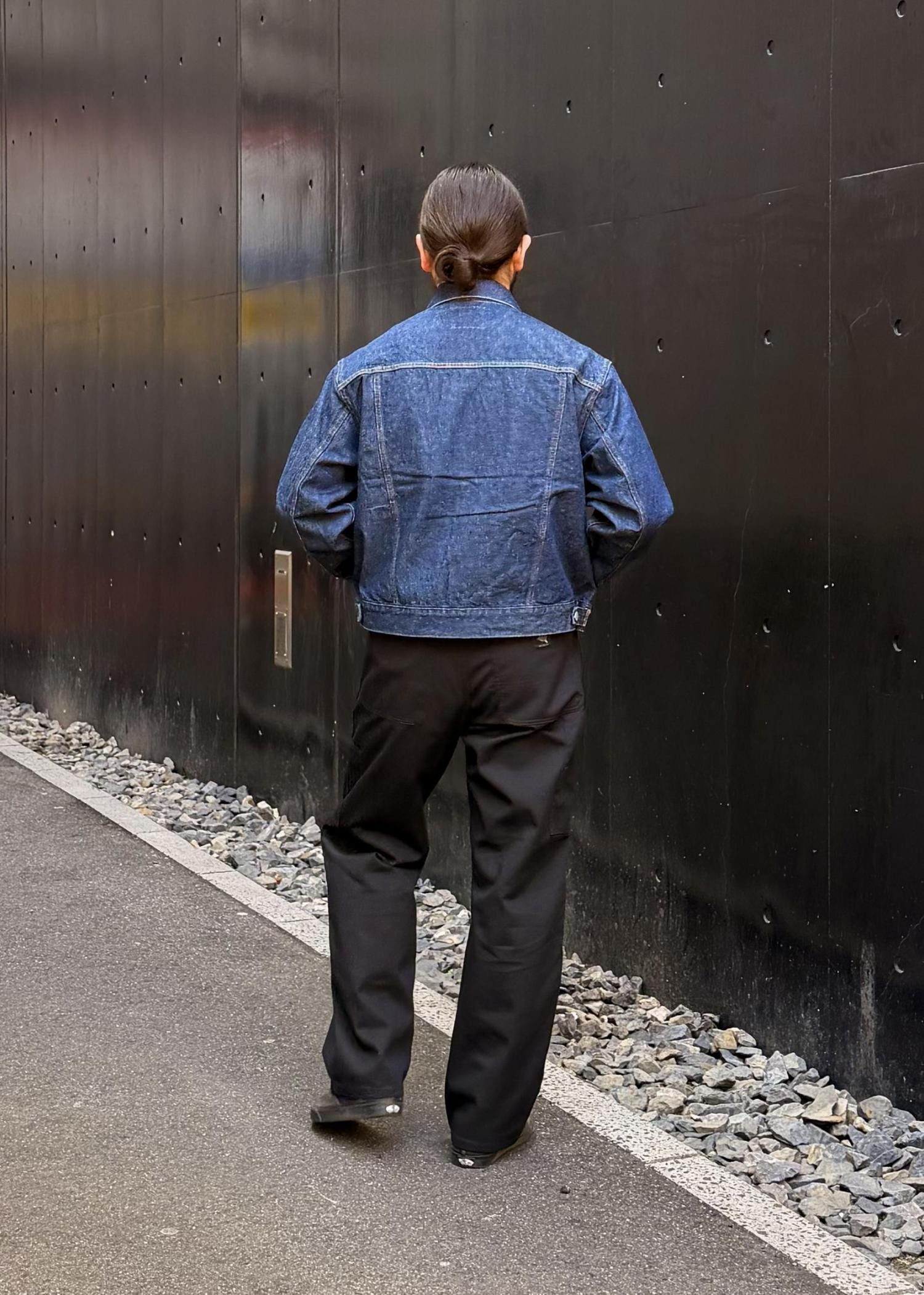 デニム×ダブルニーで無骨さと洗練さを