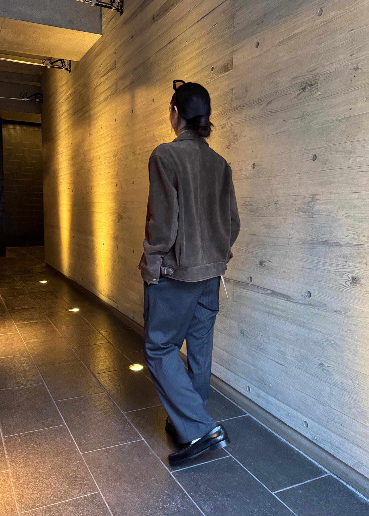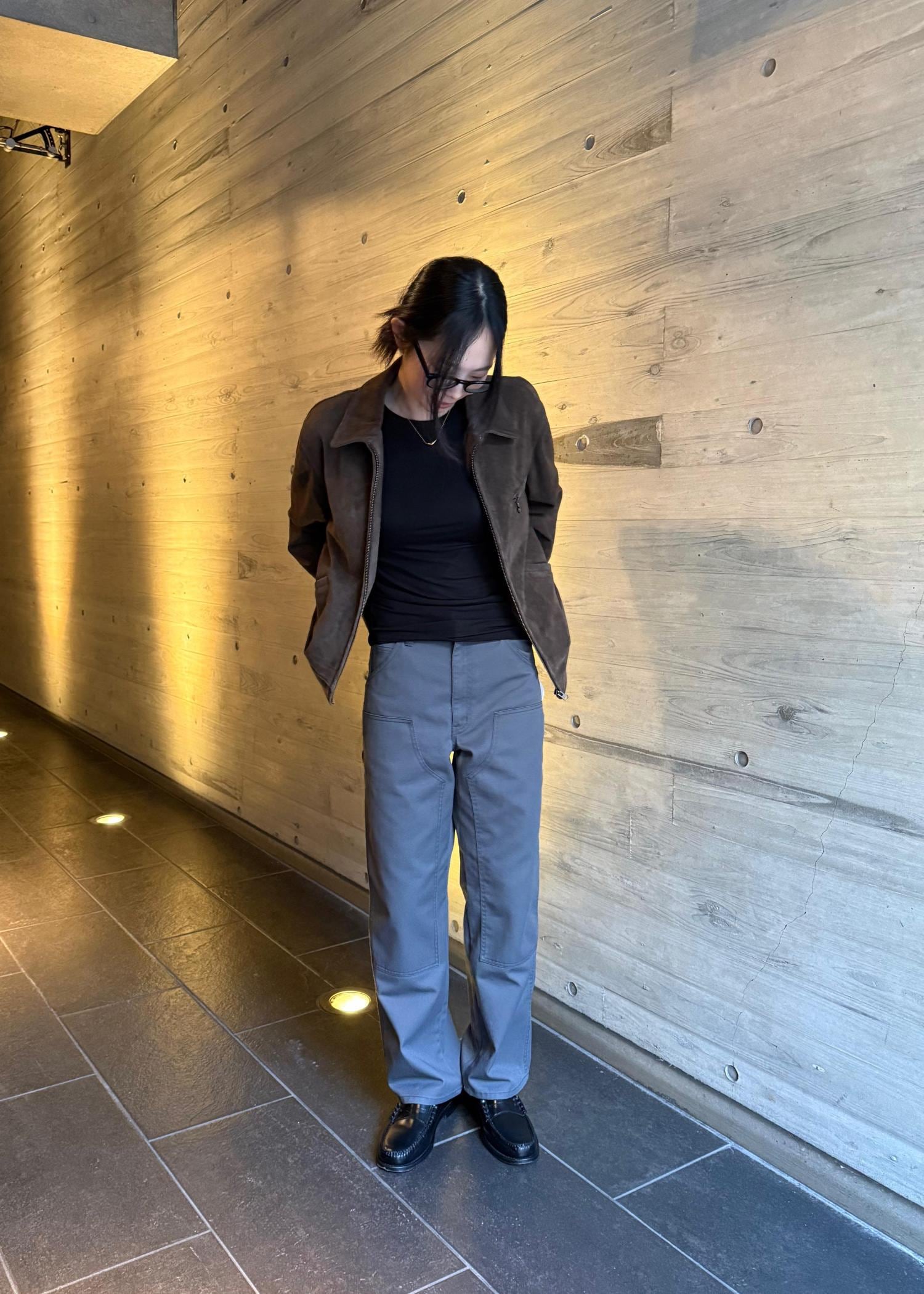 通常のダブルニータイプよりボリューム感も削ぎ落としシルエットが綺麗です。