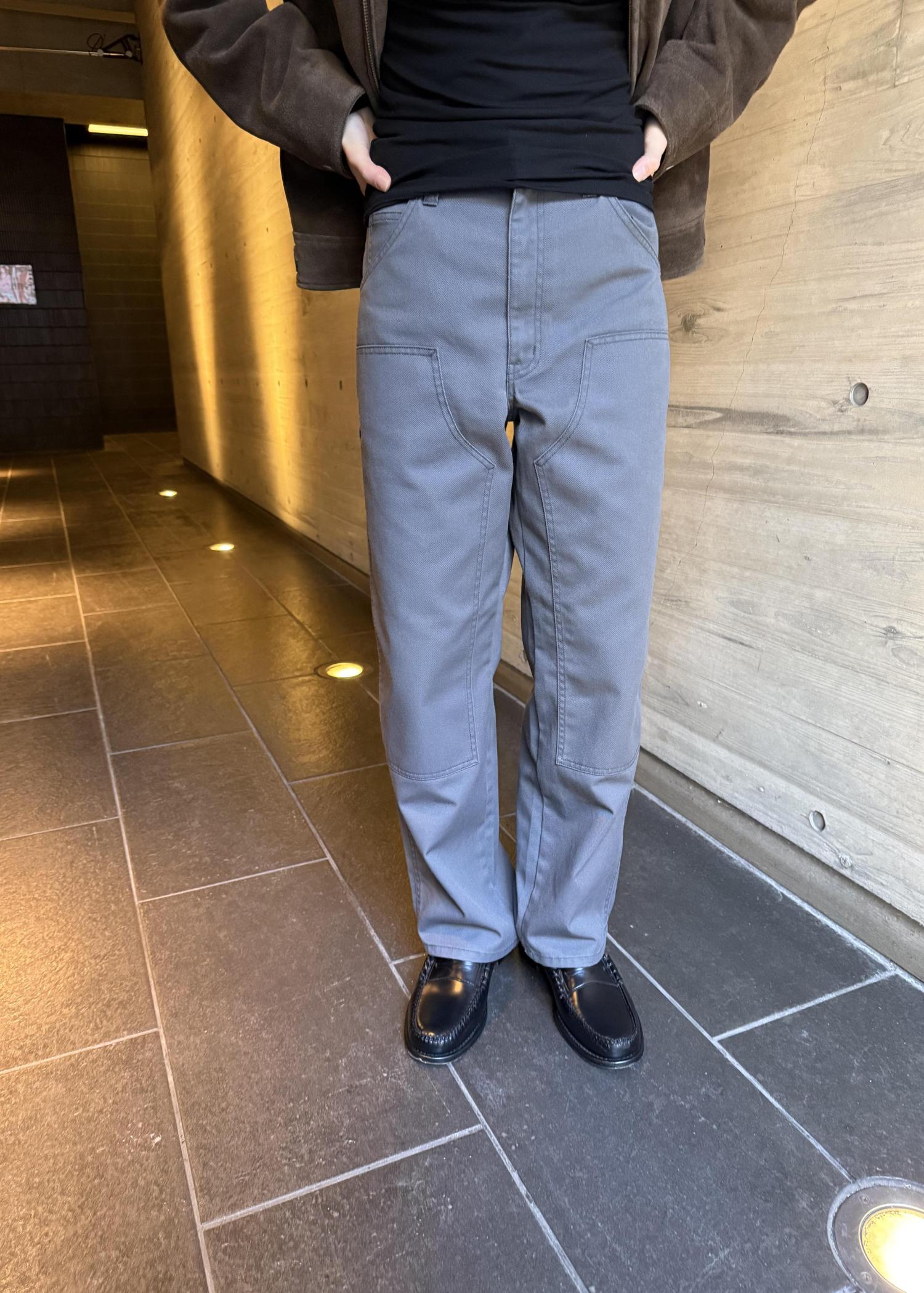 通常のダブルニータイプのワークパンツと比べてボリュームを適度に削ぎ落とし、綺麗なシルエットです。