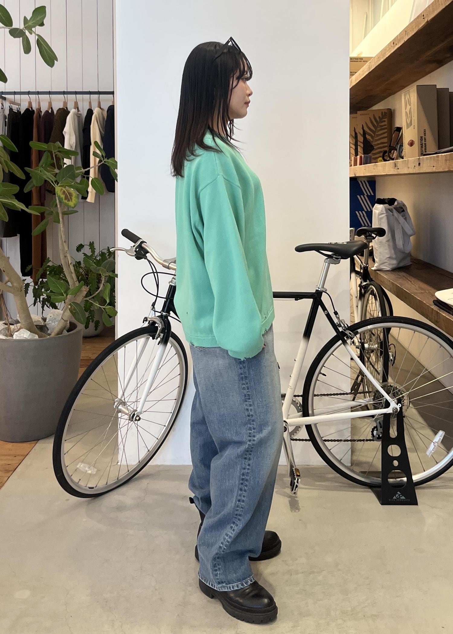 ダメージ加工が特徴的で、発色の良いミントグリーンが春らしくてお気に入り⭐︎