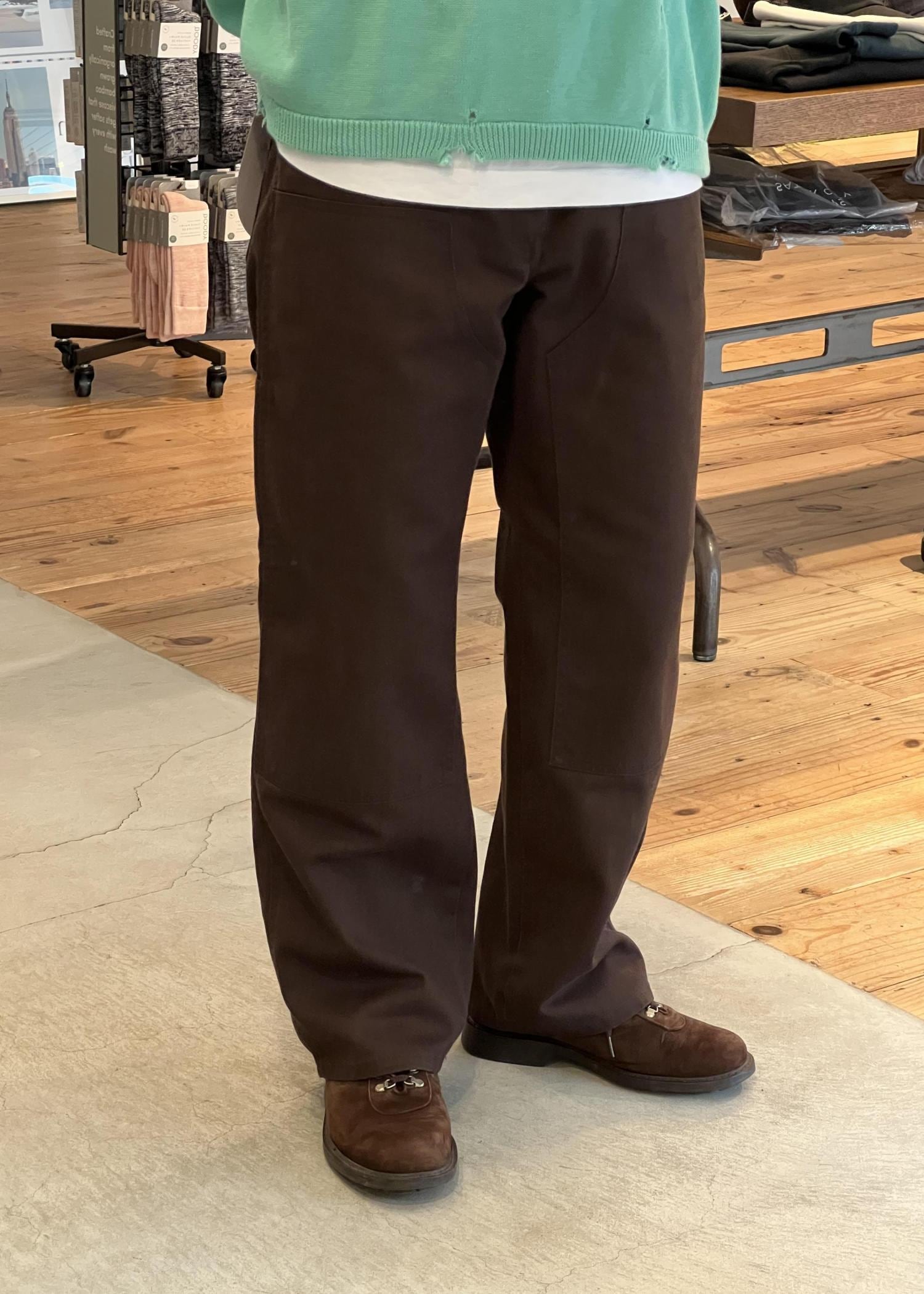 通常のダブルニータイプのワークパンツの類と比べ、ボリュームを適度に削ぎ落とし、タウンユースに最適なシルエットに変更しています。