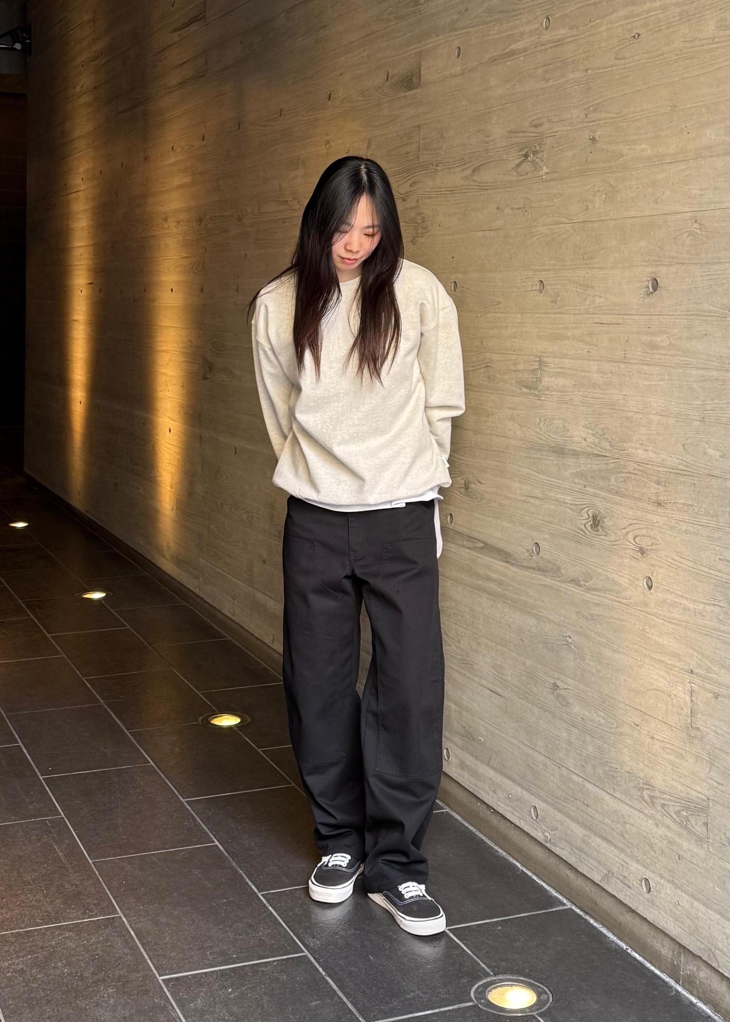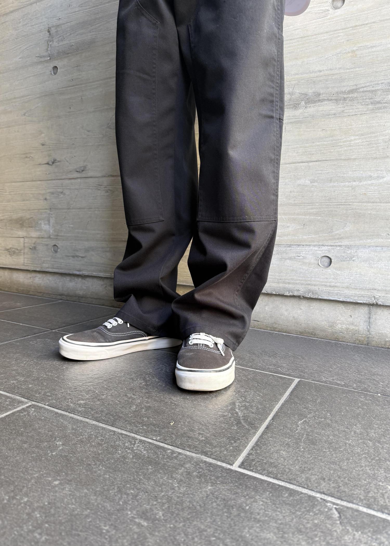 通常のダブルニータイプのワークパンツと比べてボリュームを適度に削ぎ落とし、綺麗なシルエットです。