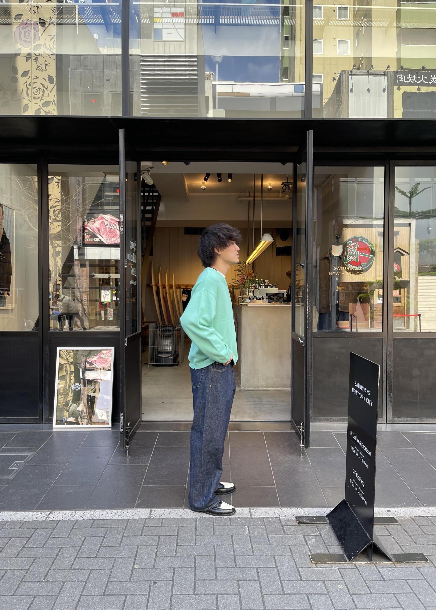 リジットデニムとの合わせで、同色の濃紺を意識して組んでみました!