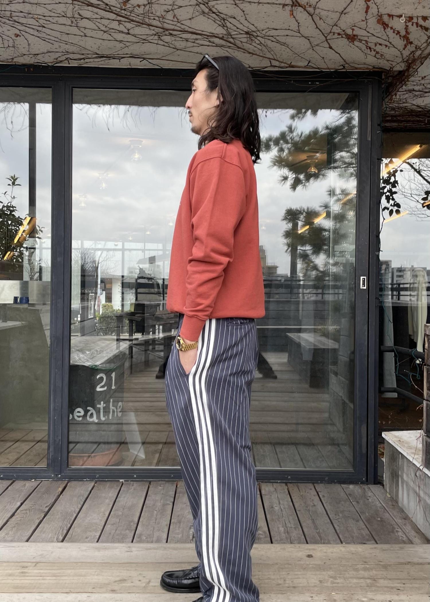 トップスは、SaturdaysNYC定番のミラースタンダードロゴのトレーナーです!