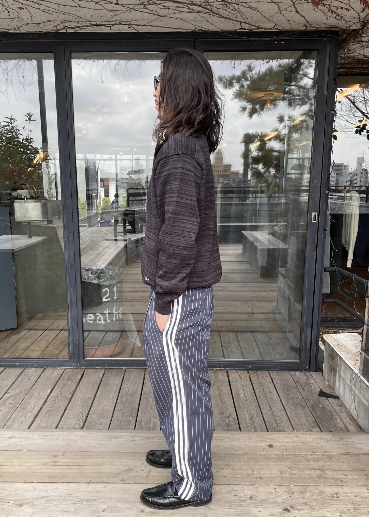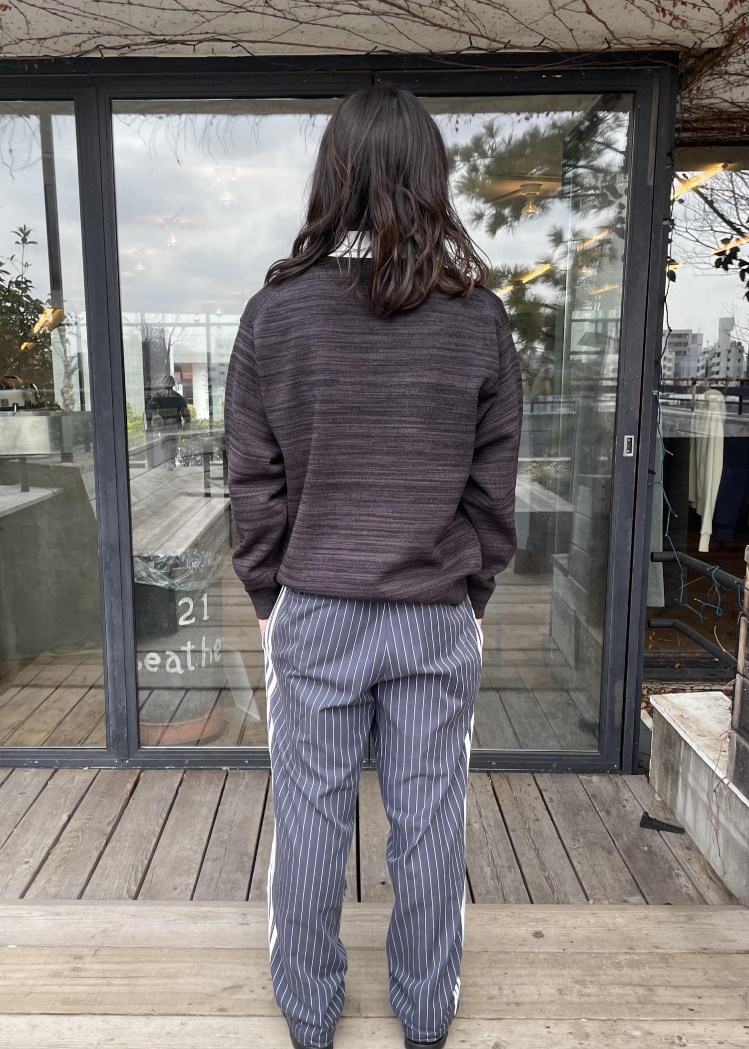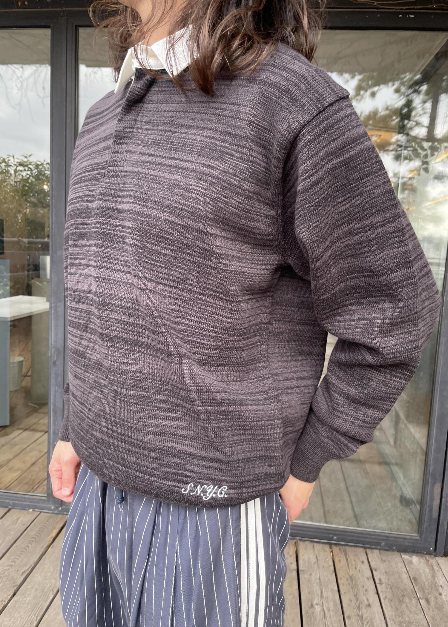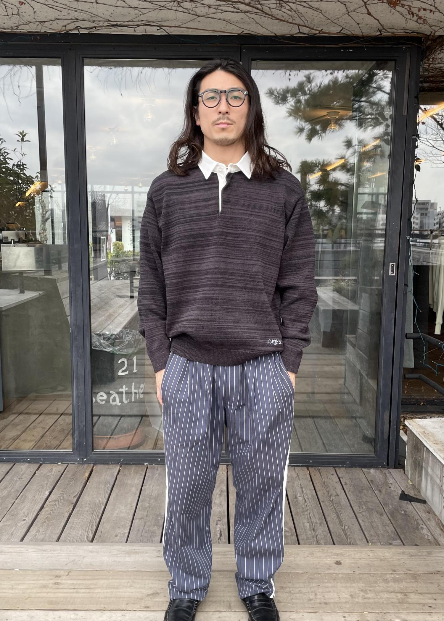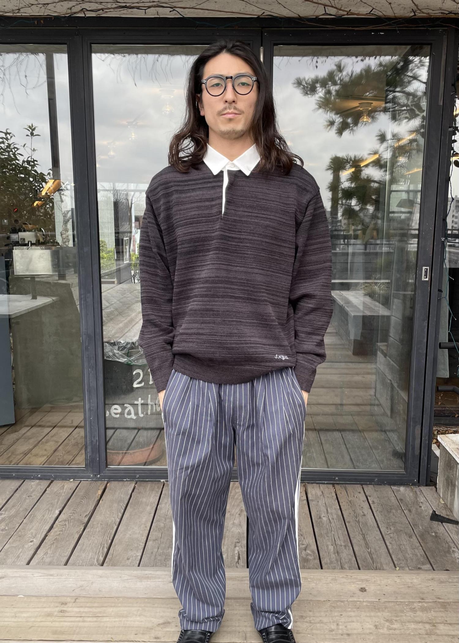 ラガーシャツによくあるような太いボーダーが入っているデザインではなく、同色で細かいボーダーが入っているデザインなので、色々なスタイリングにも合わせやすいアイテムです!