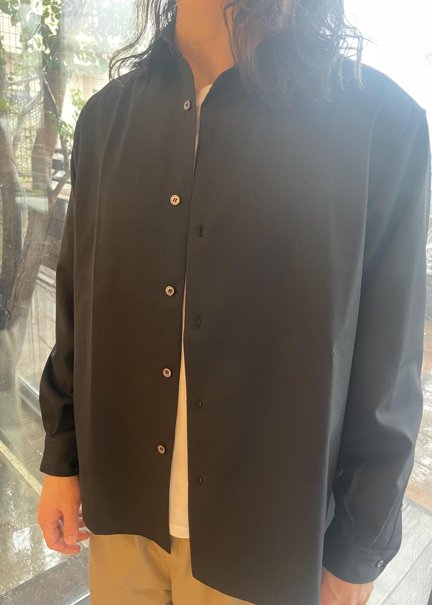 薄手のシャツなので、重ね着してもかさばることがあまりなく、重ね着もしやすいアイテムです!