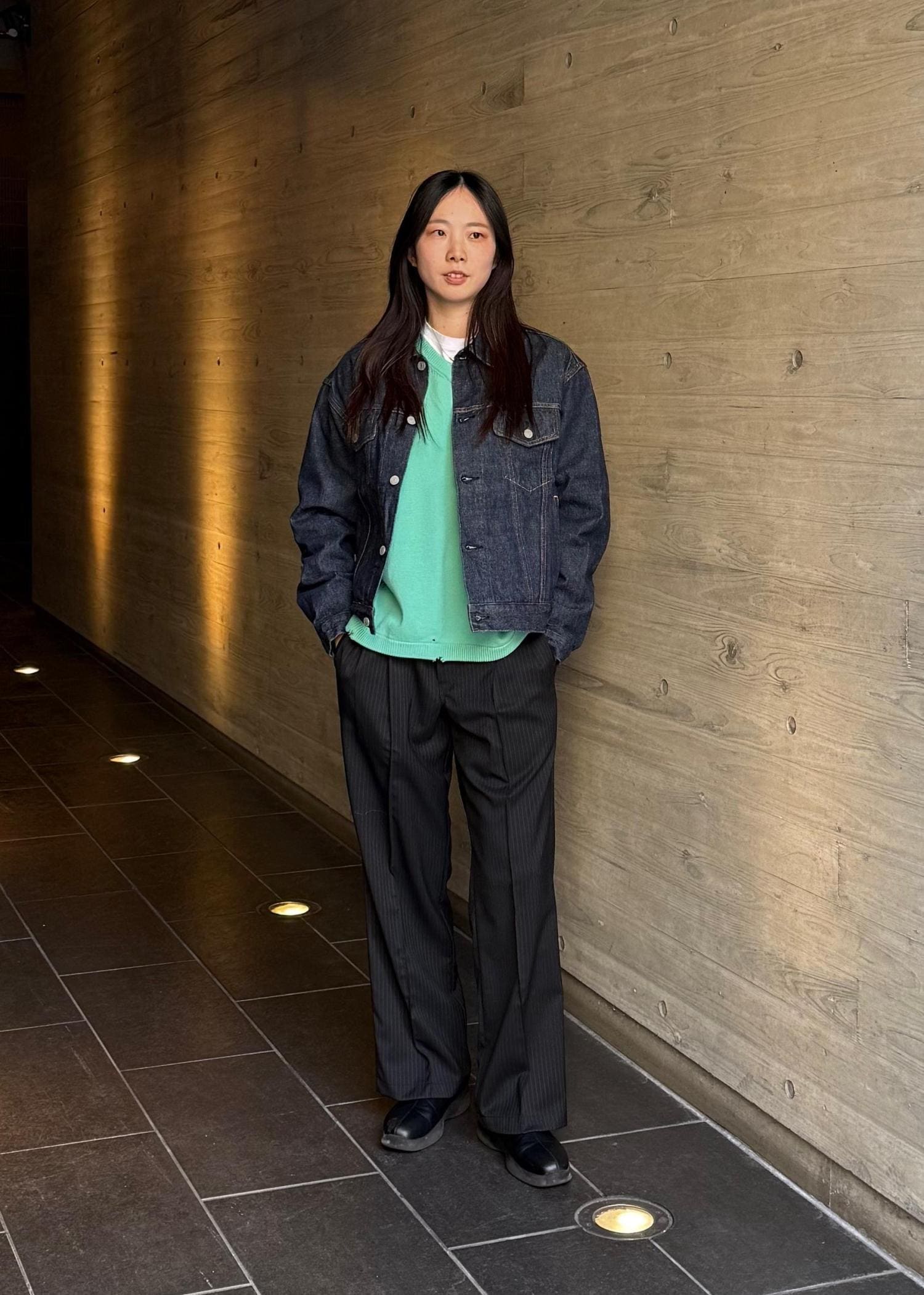 経糸にムラ糸を使用しており、縫製糸にはコア糸(ポリエステルフィラメントの芯に綿でカバーした糸)を使用しているので自然な経年変化を楽しめます。