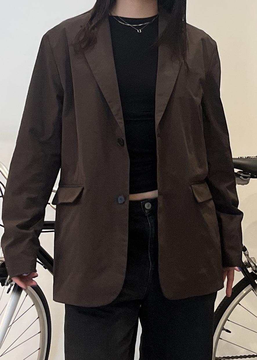 NEW!Saturdays NYCMirza Easy Wear Blazerダークブラウン / M¥35,200レビューすっきりとした肩に程よいゆとりのアームから袖、ややボリュームのある身幅と大人のリラックスシルエットを表現したパターンになっています。