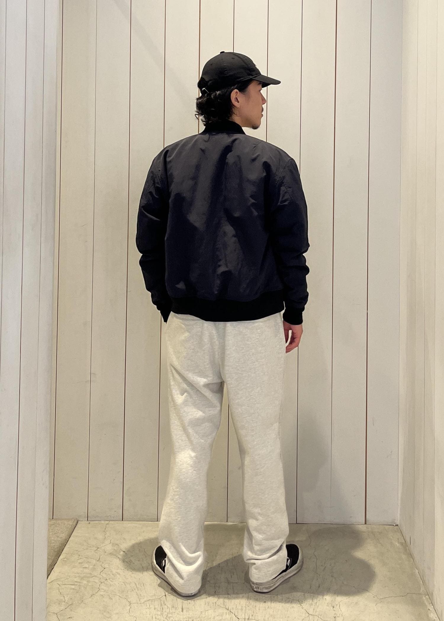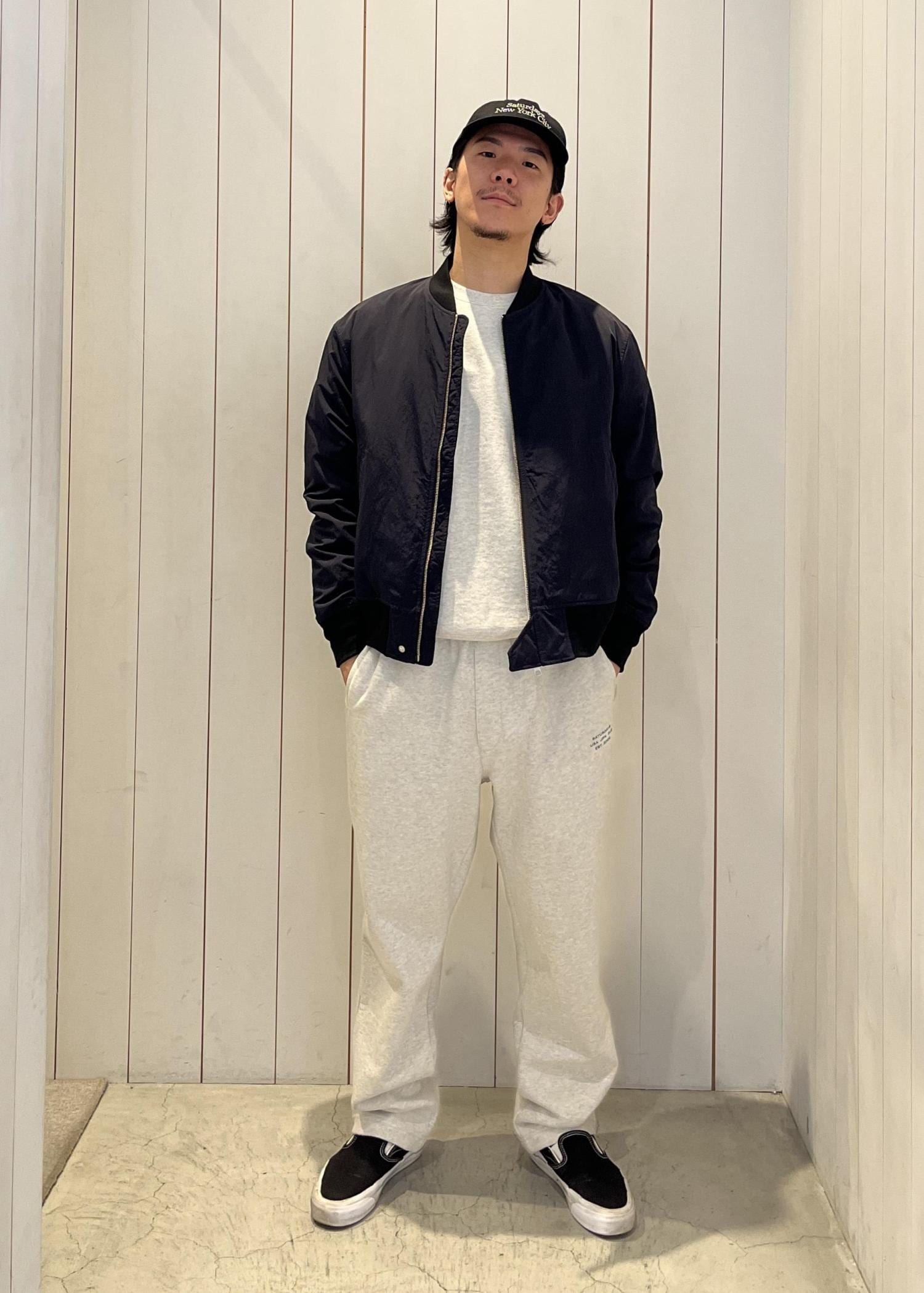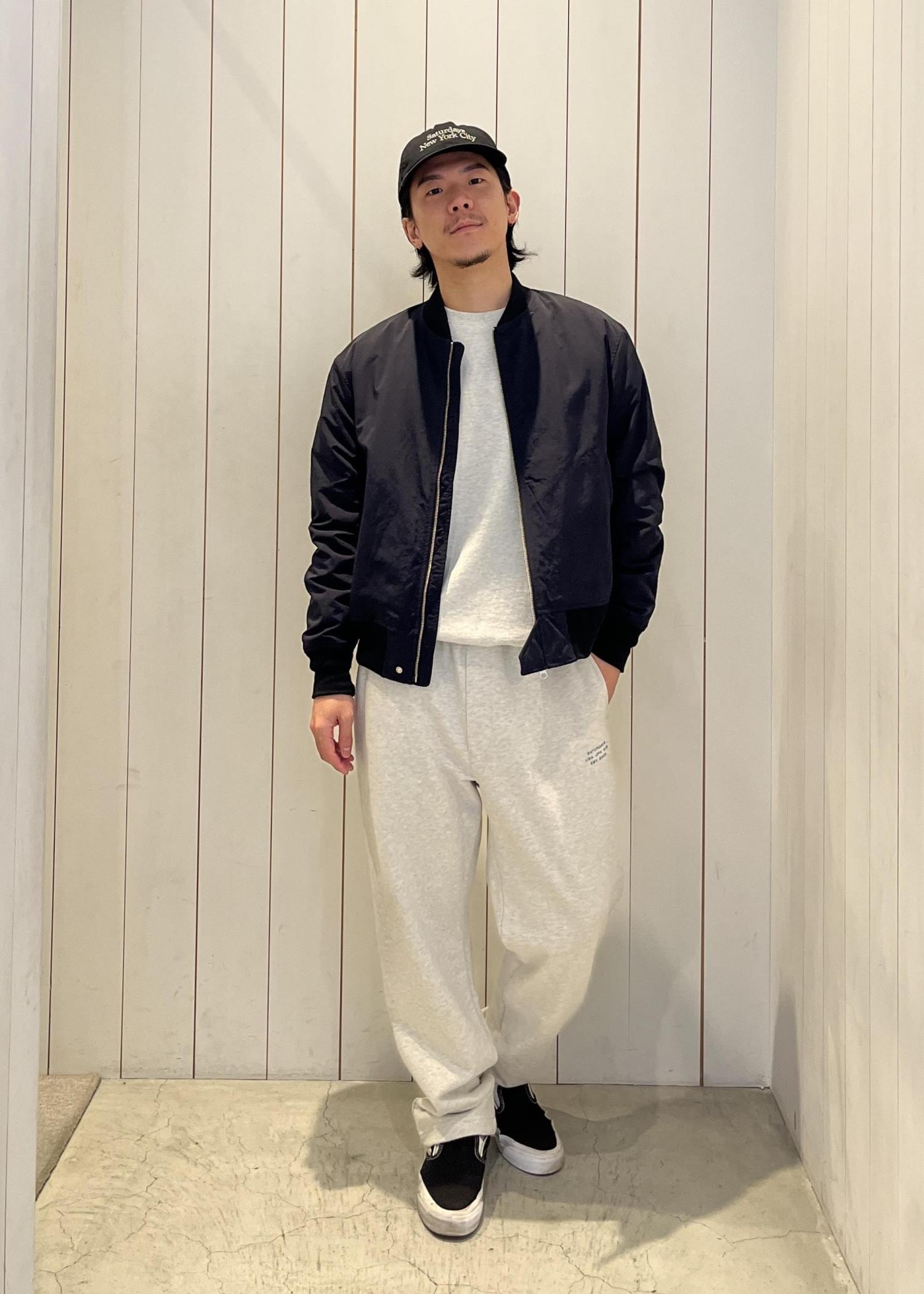 今回はスウェットのセットアップに、軽やかなブルゾンを合わせたスタイル。