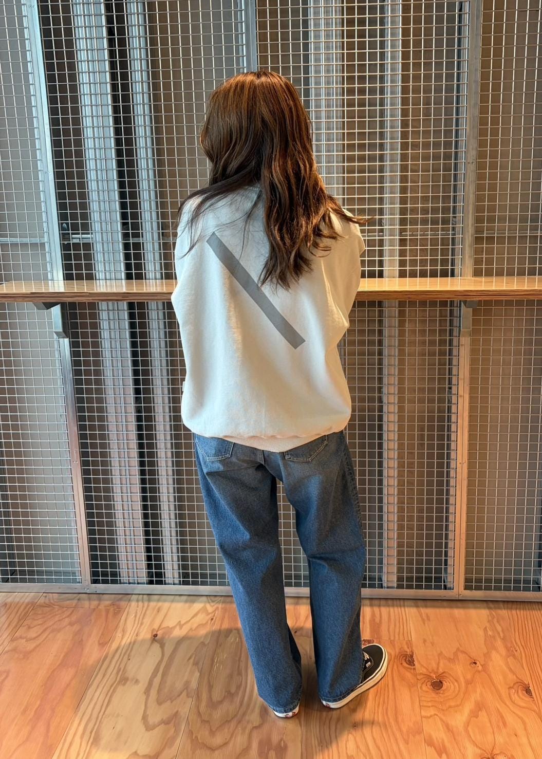 ダメージ加工が特徴的なスウェット、さらっとした薄手のスウェットで暖かい時期にも活躍間違いなし◎