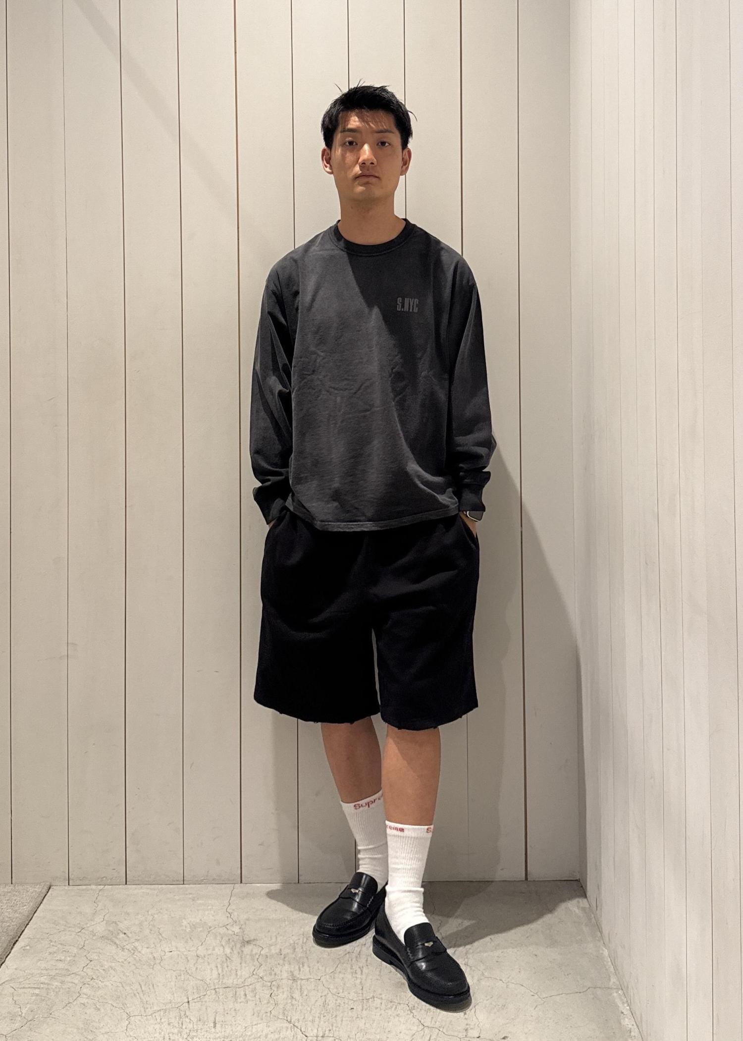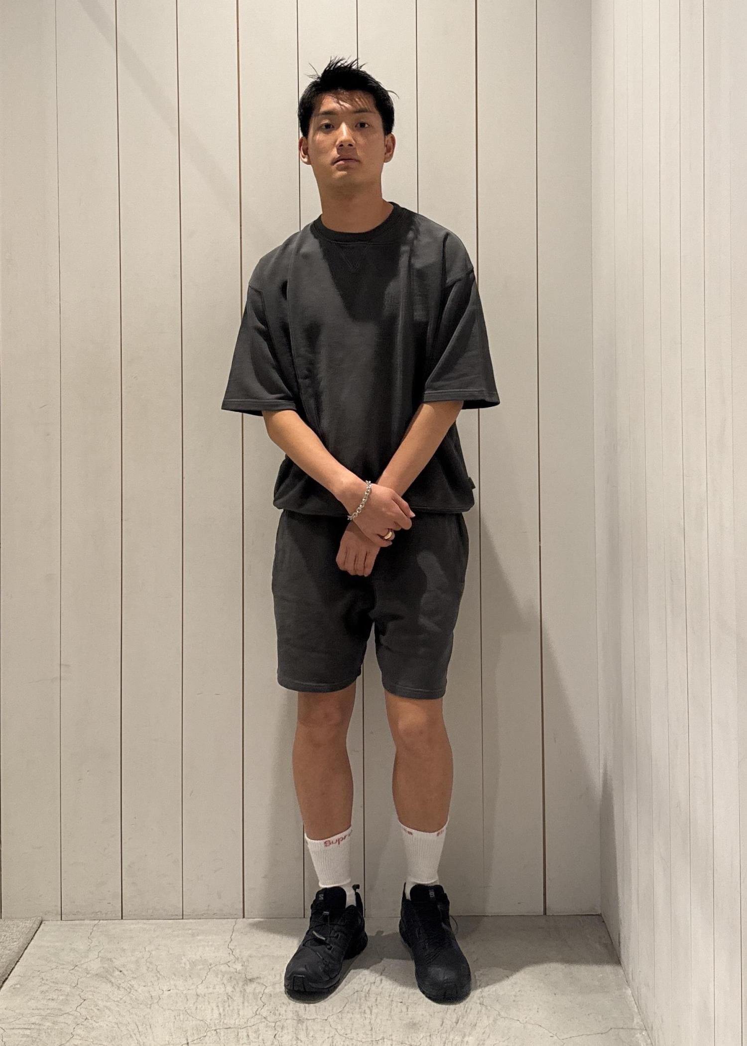 今回はブラックのセットアップをベースに、シンプルにまとめたコーディネート!