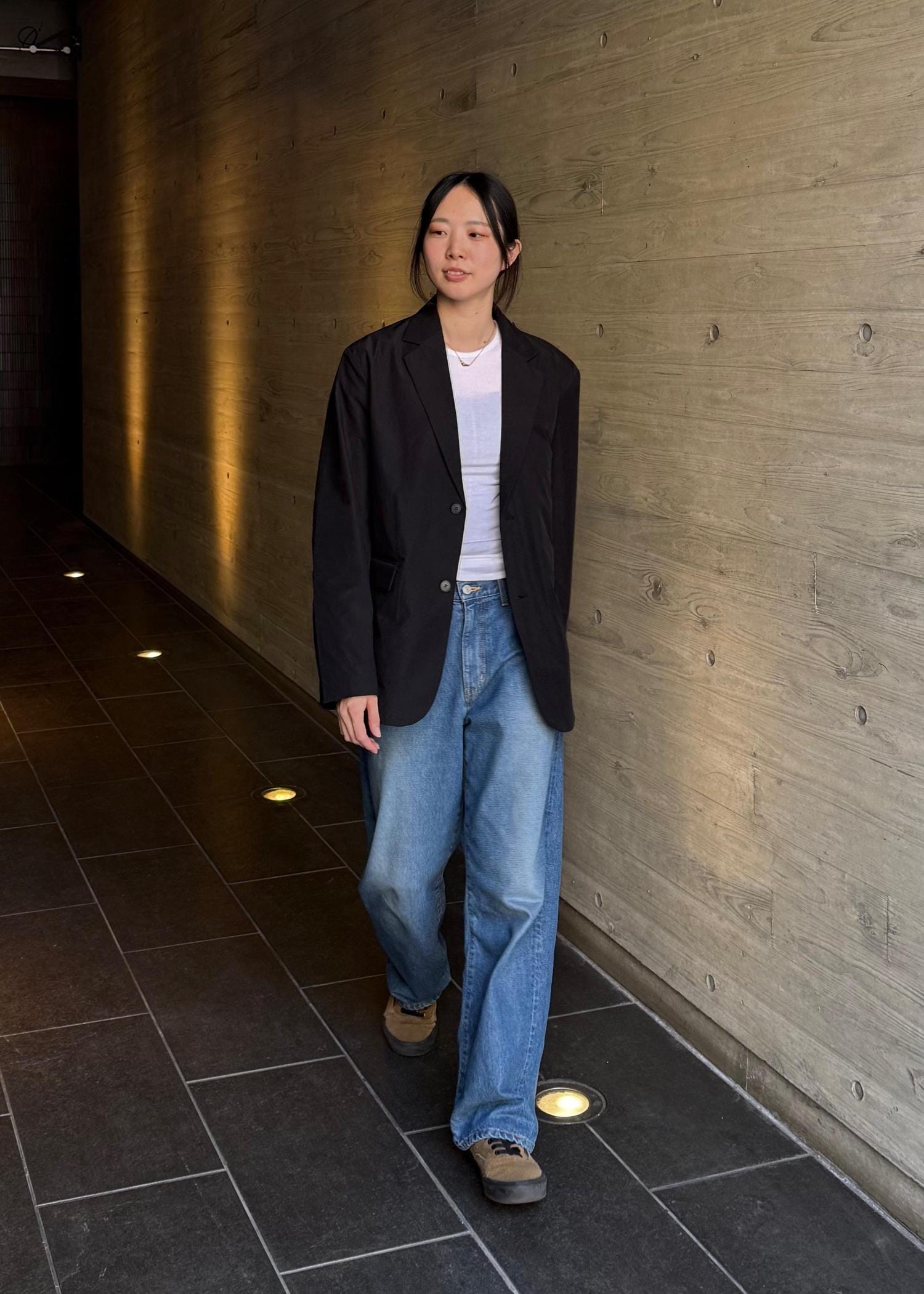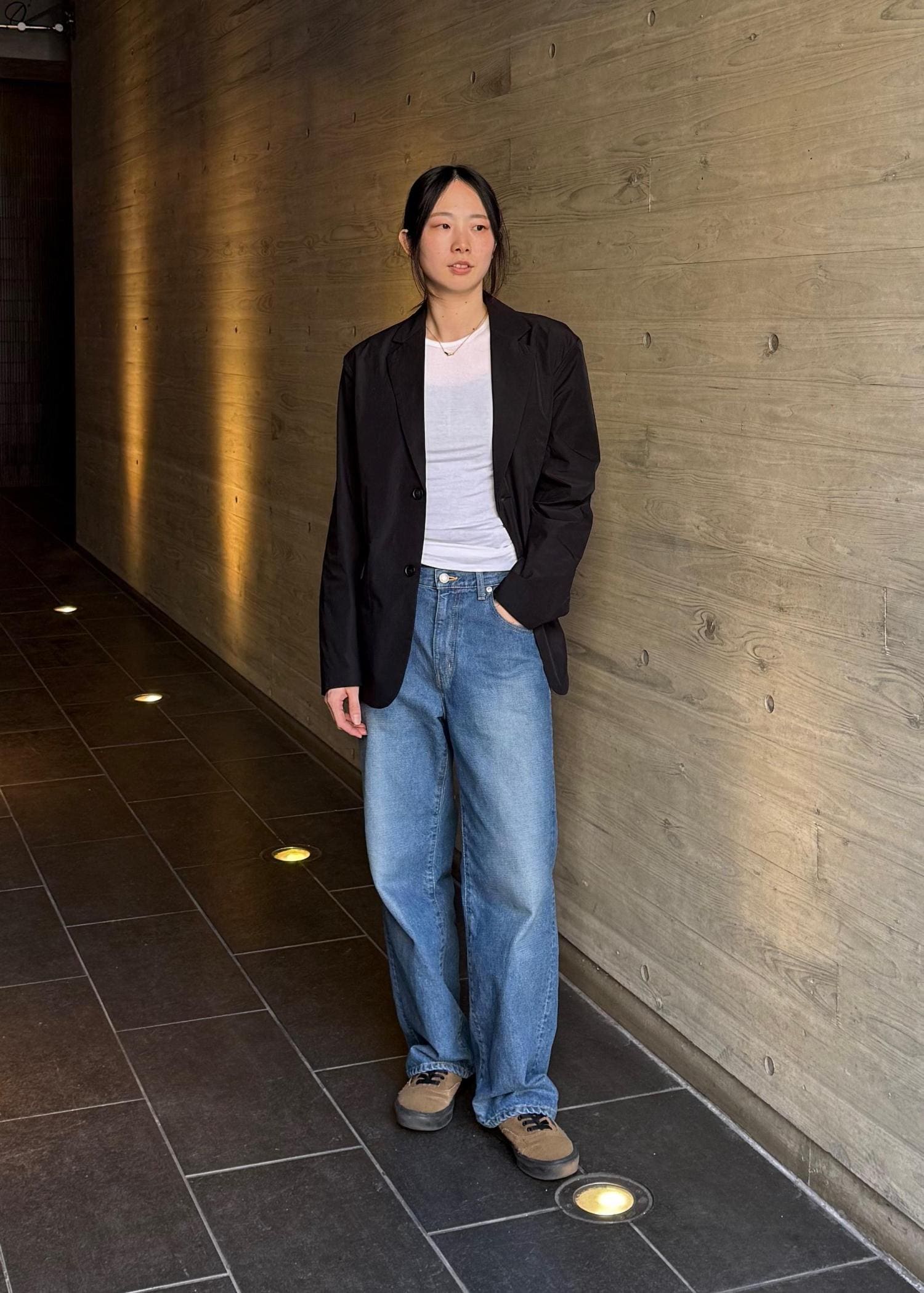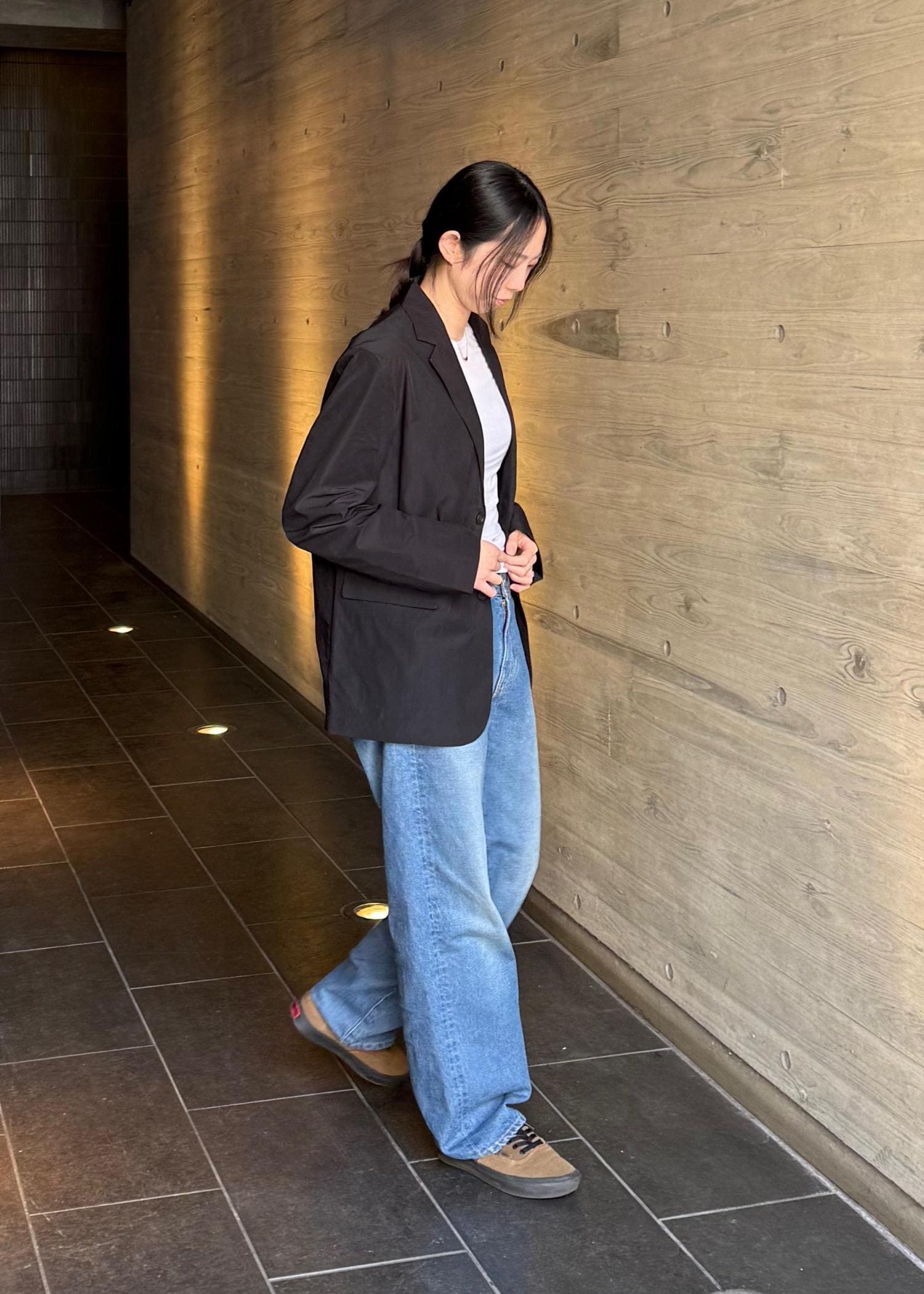 ワイドなシルエットでサイズはワンサイズ上げて履いてます。