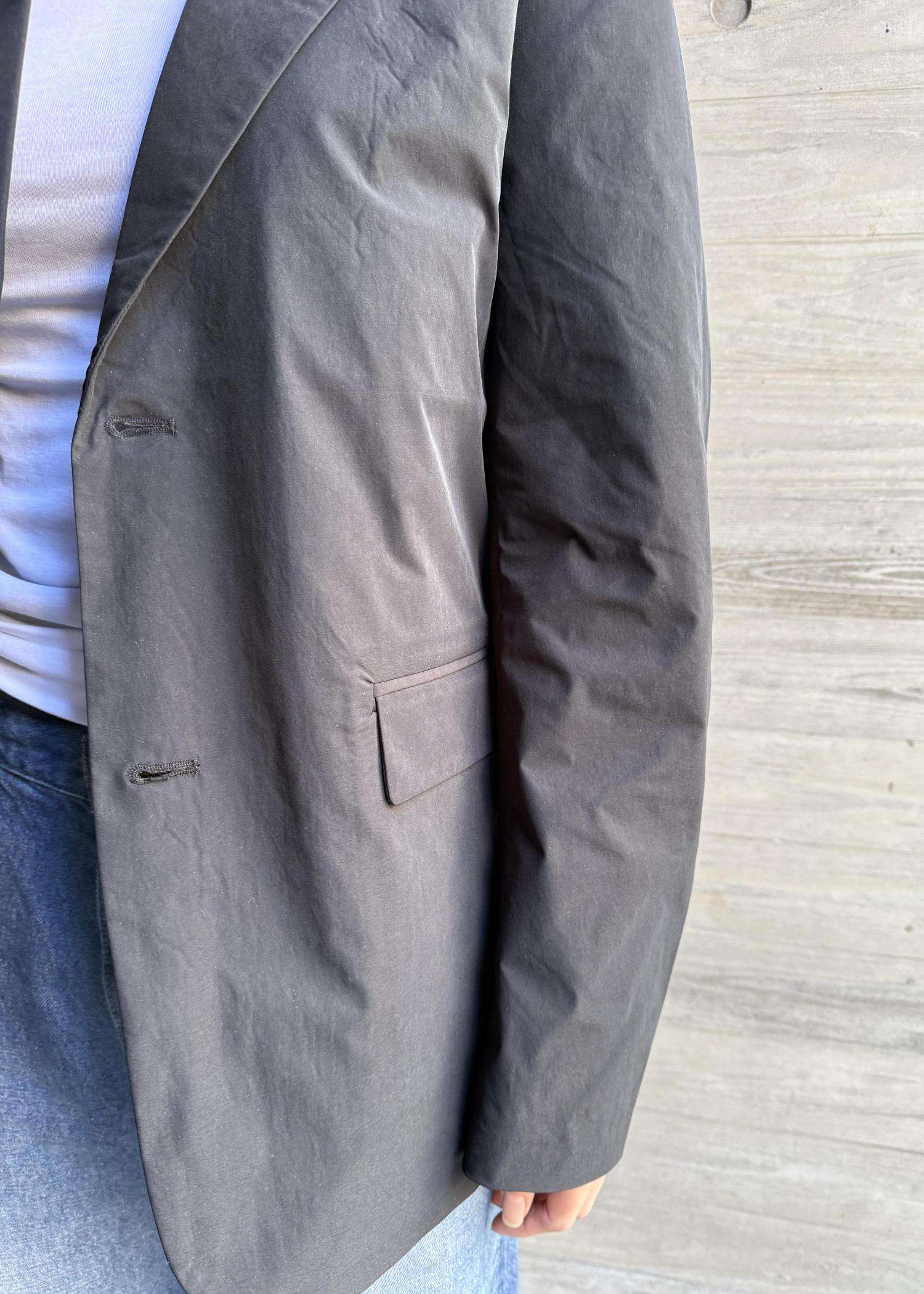 すっきりとした肩に程よいゆとりのアームから袖、ややボリュームのある身幅と大人のリラックスシルエットを表現したパターンになっています。