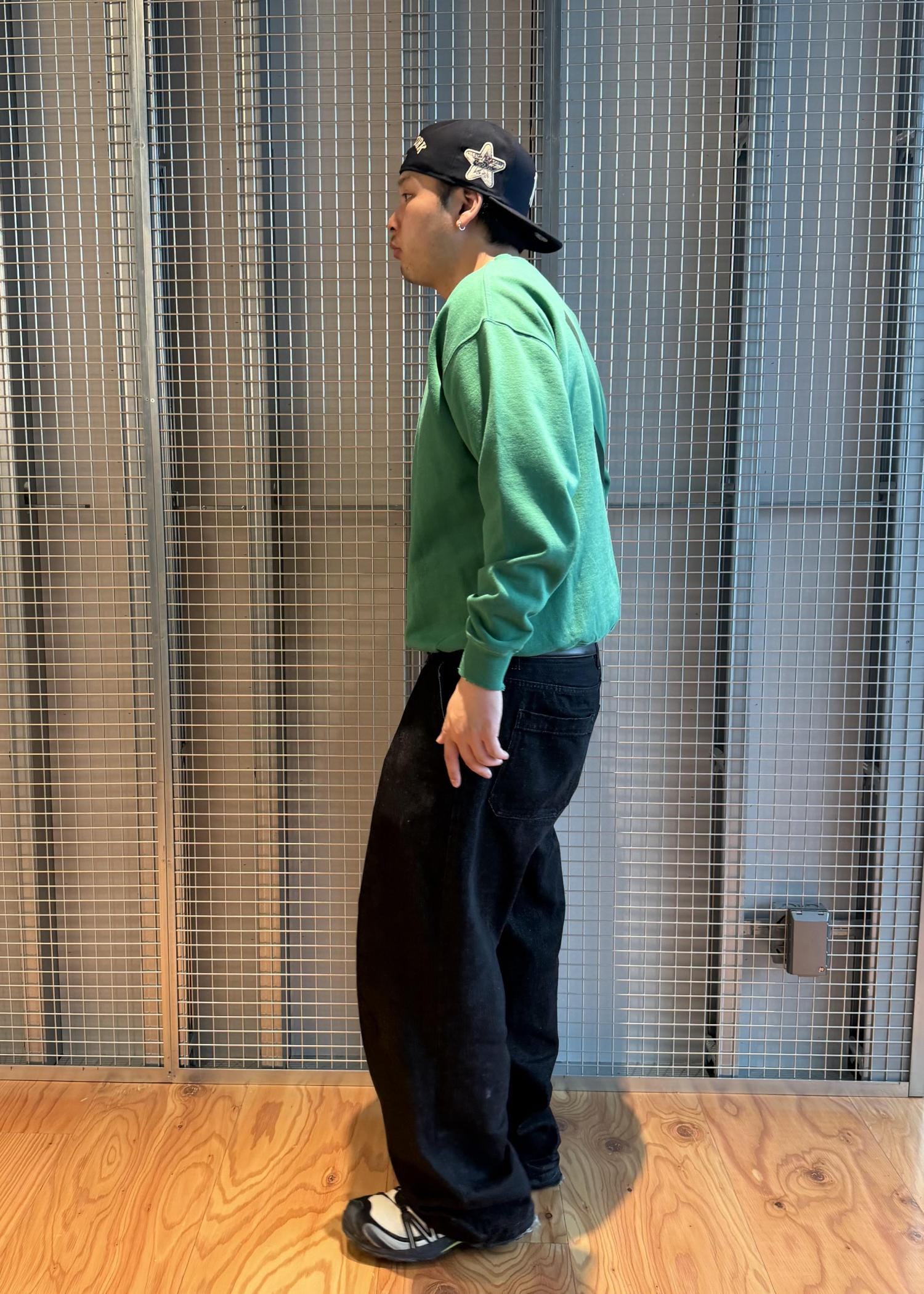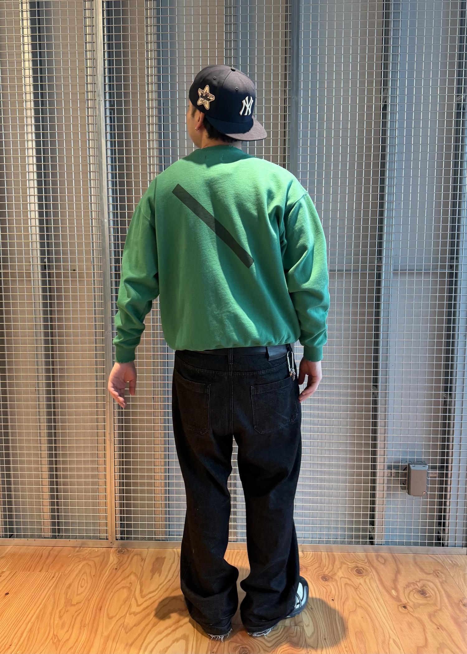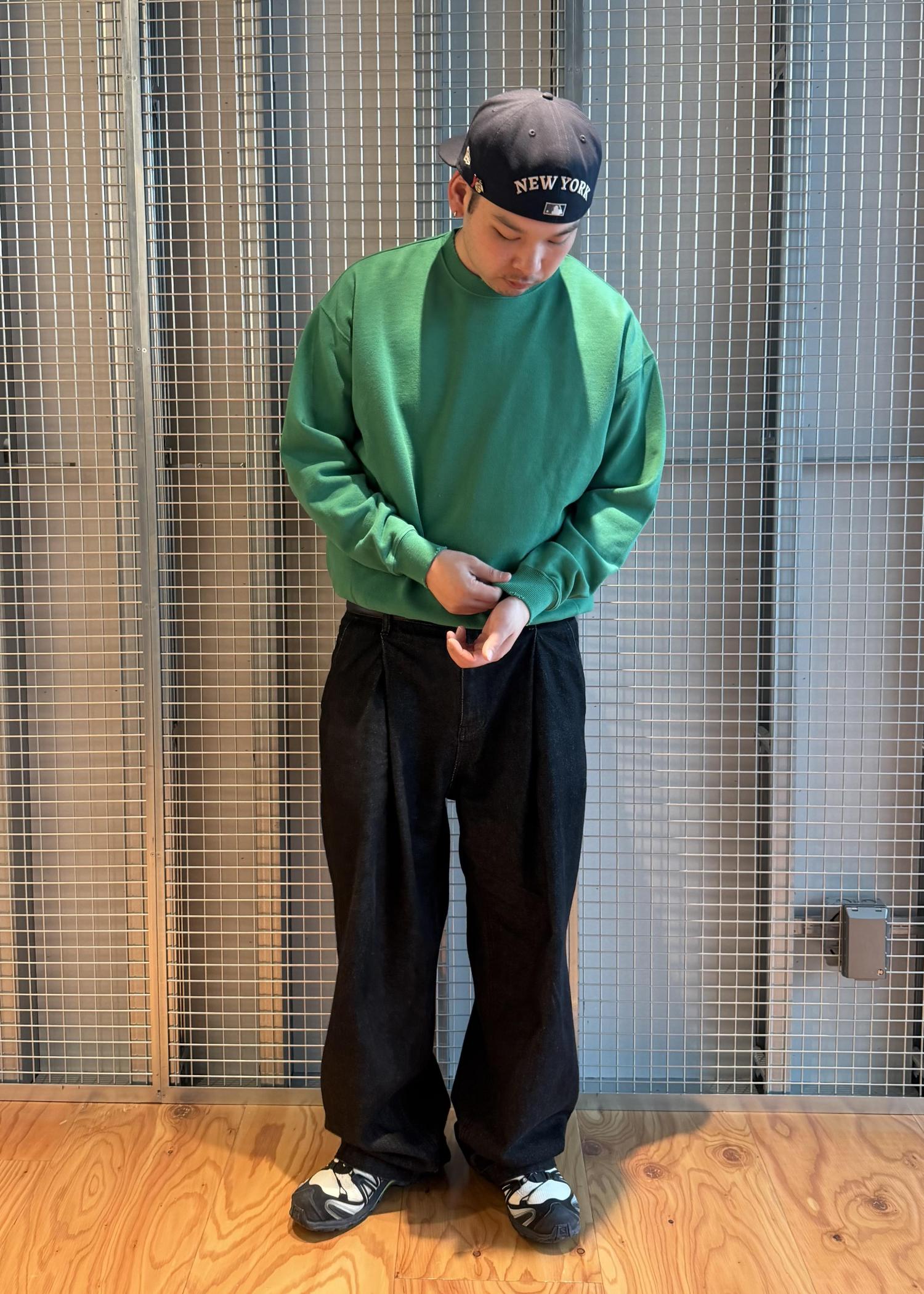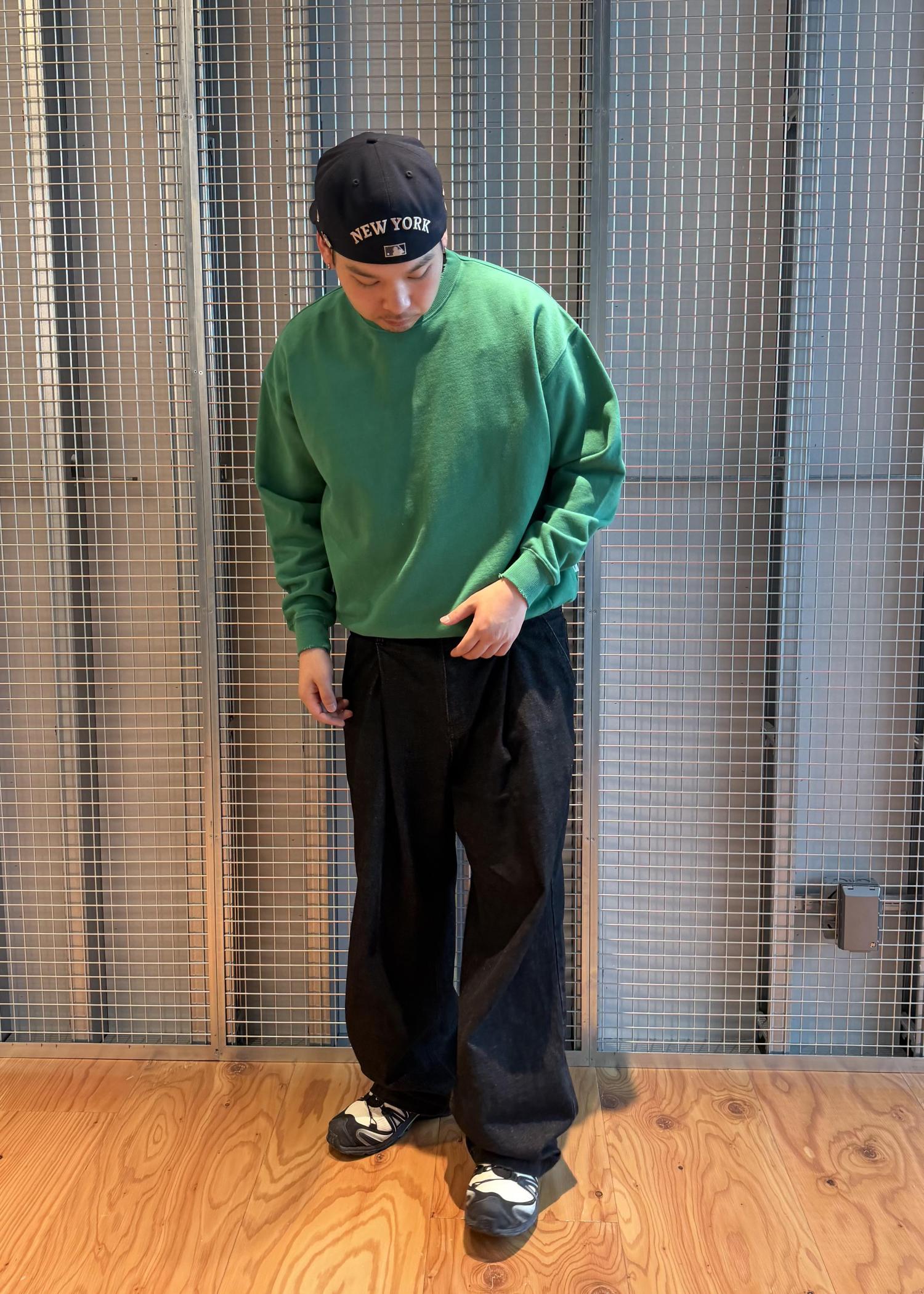 グリーンの色も着てしまうと馴染見やすく、デニムなどにも合わせやすいアイテムです!