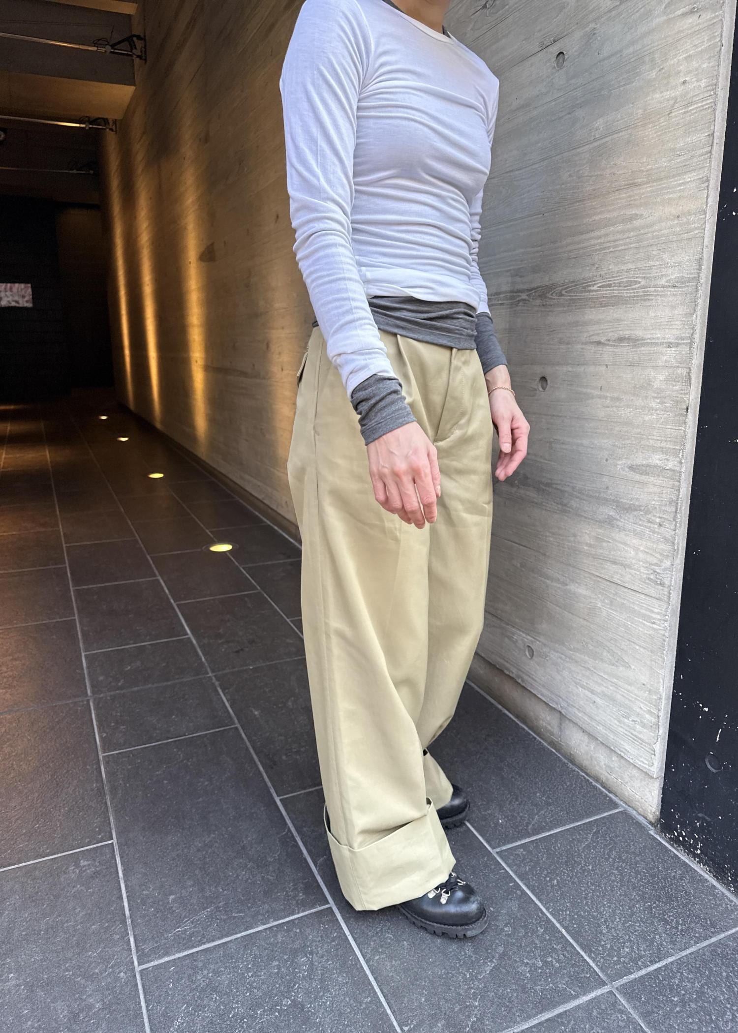 パンツはボリューム感がありスタイルアップになっています。