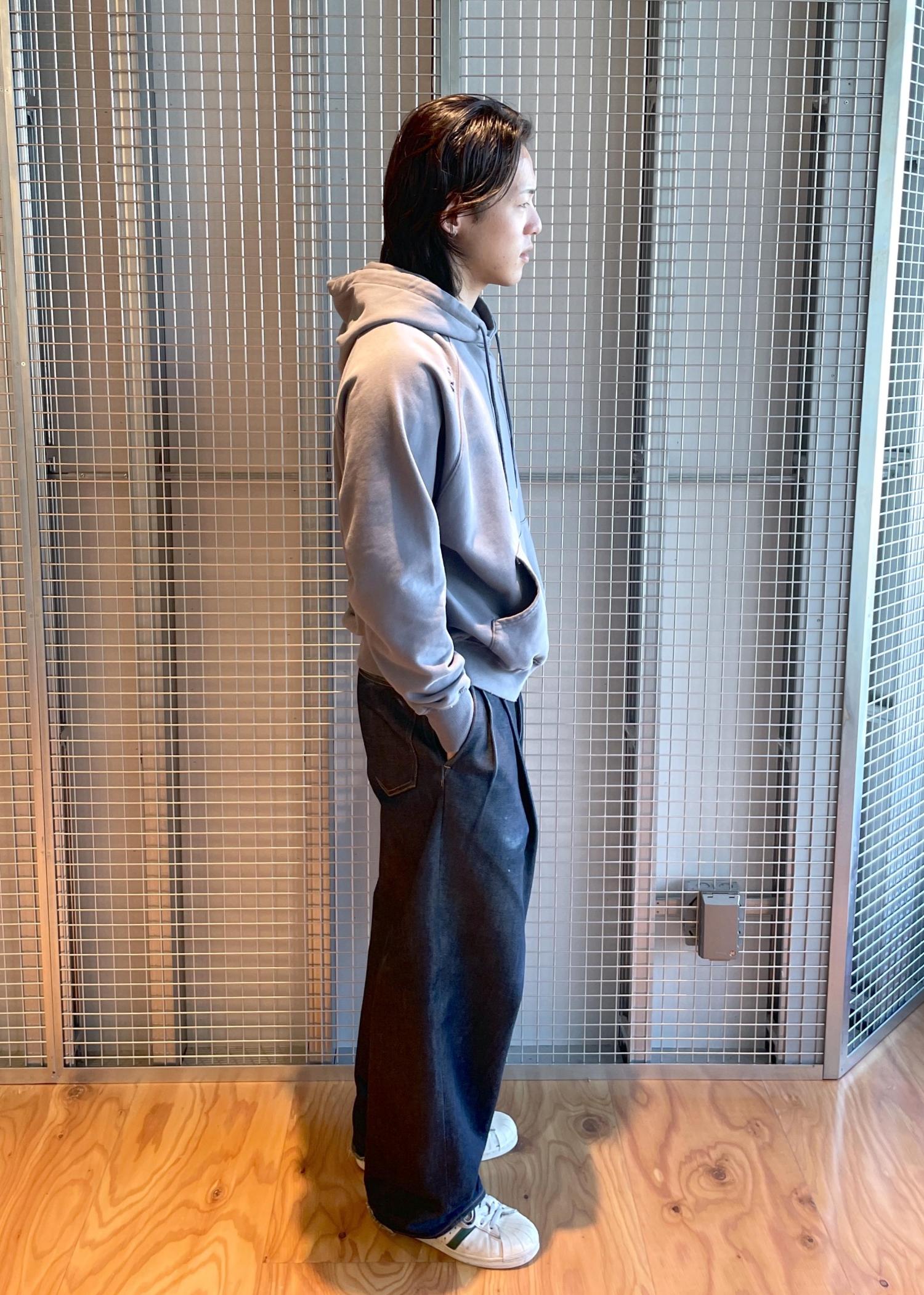 ゆとりのある身幅のリラックスしたサイジングで、遊び心のあるダメージ加工もポイントのアイテムです!