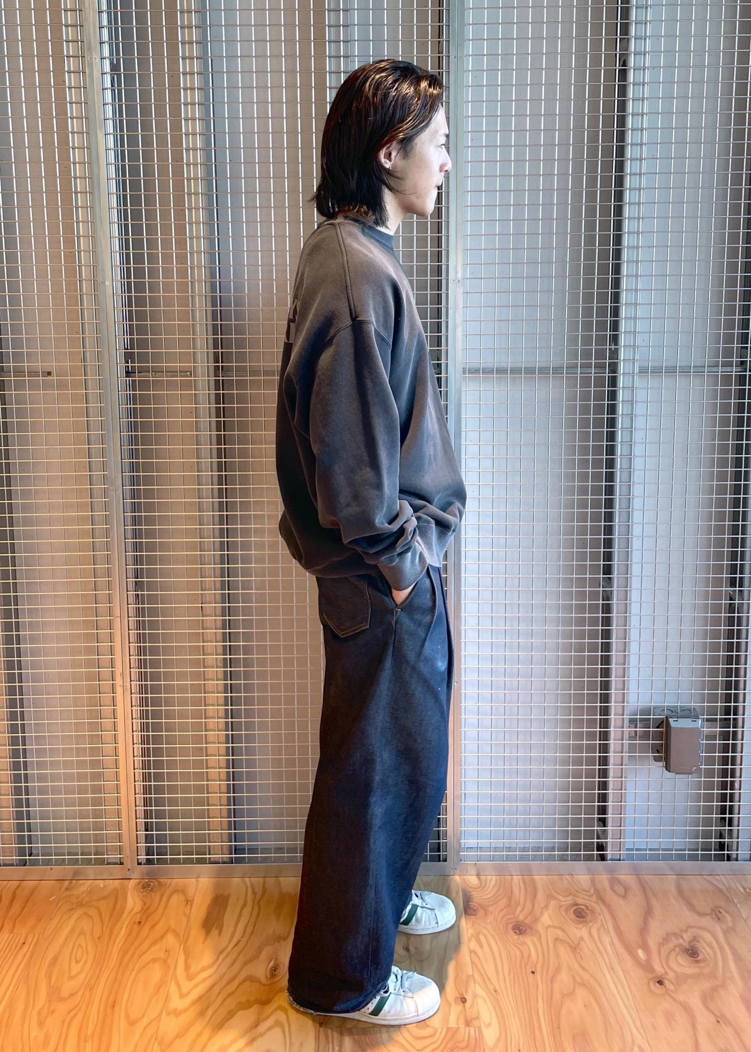 コットン裏毛素材にオゾンウォッシュ加工を施したビンテージライクなクルーネックスウェットです。