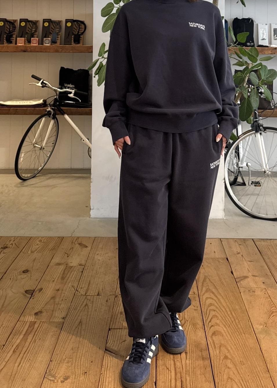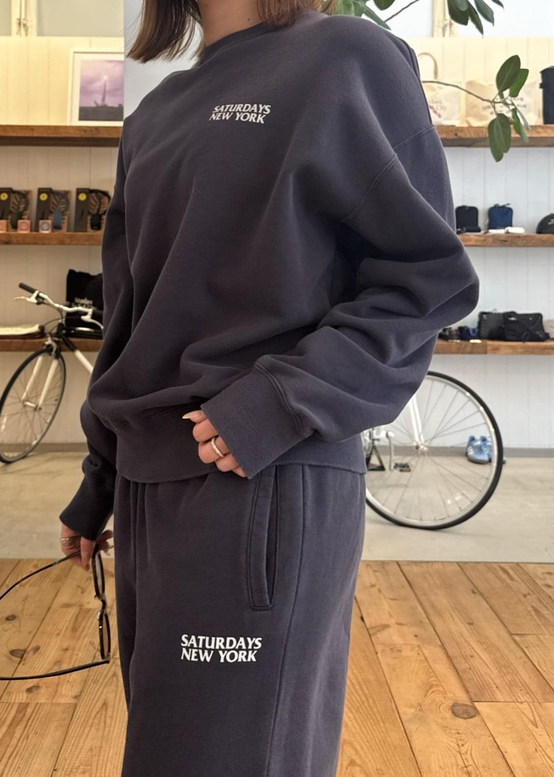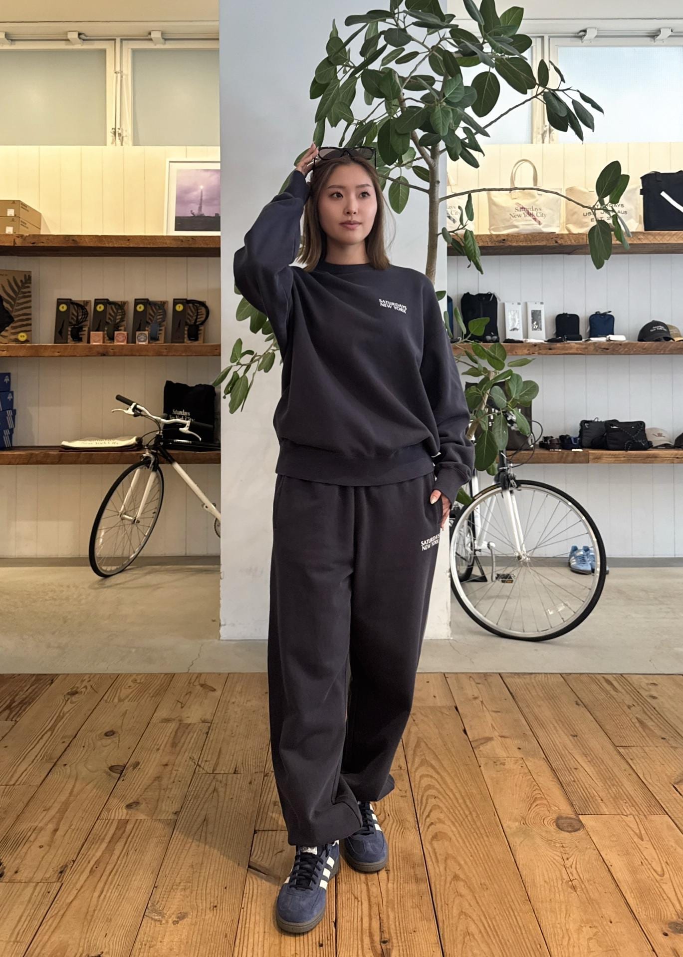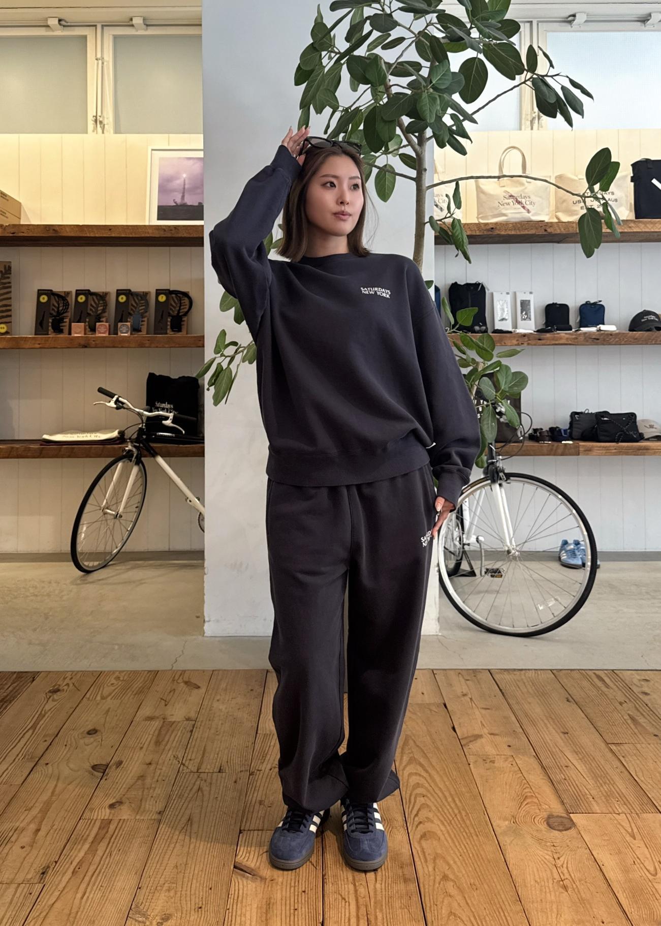 トップス&パンツはコットン裏毛素材にオゾンウォッシュ加工を施したセットアップで使えるスウェットでラフに可愛く!