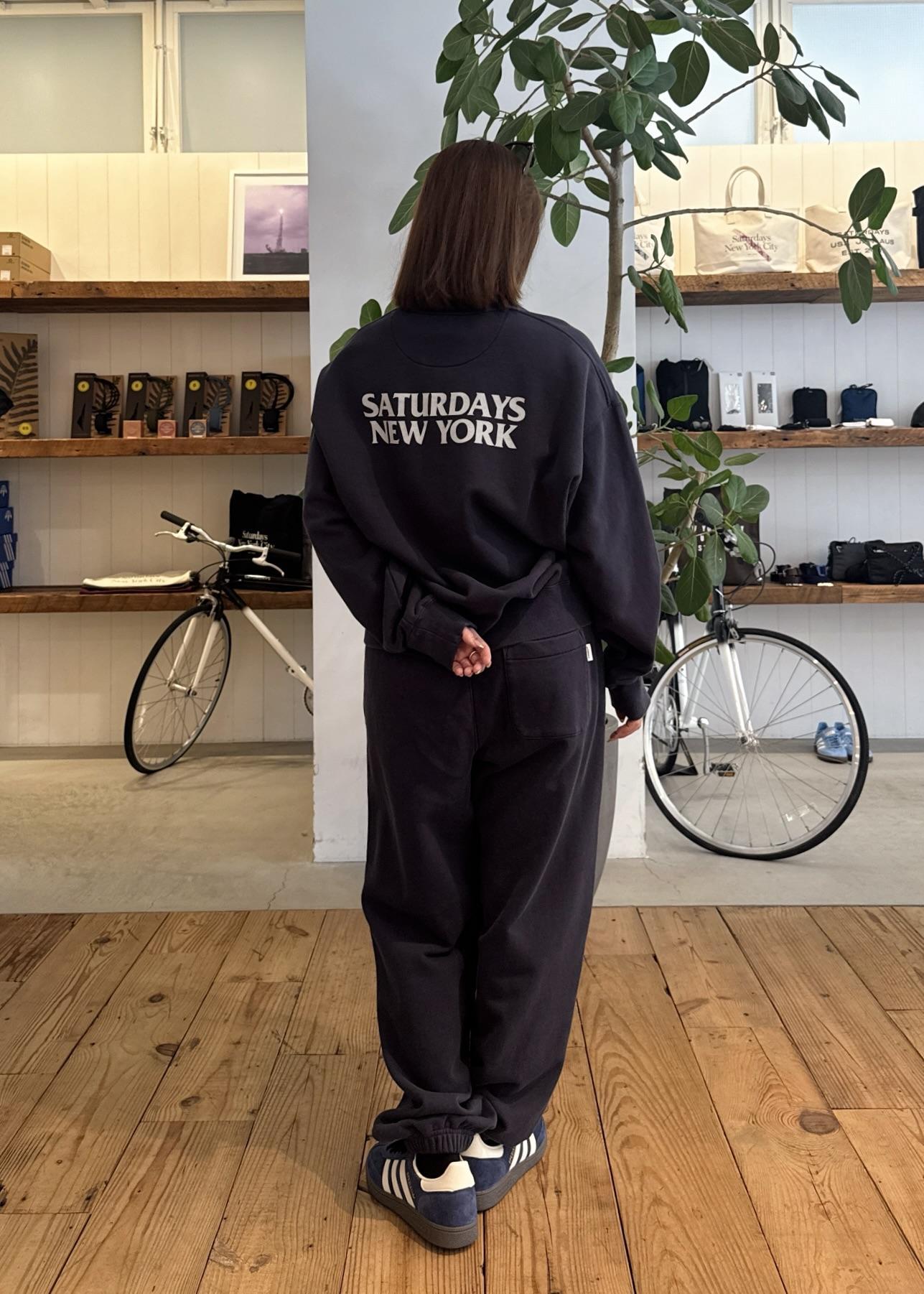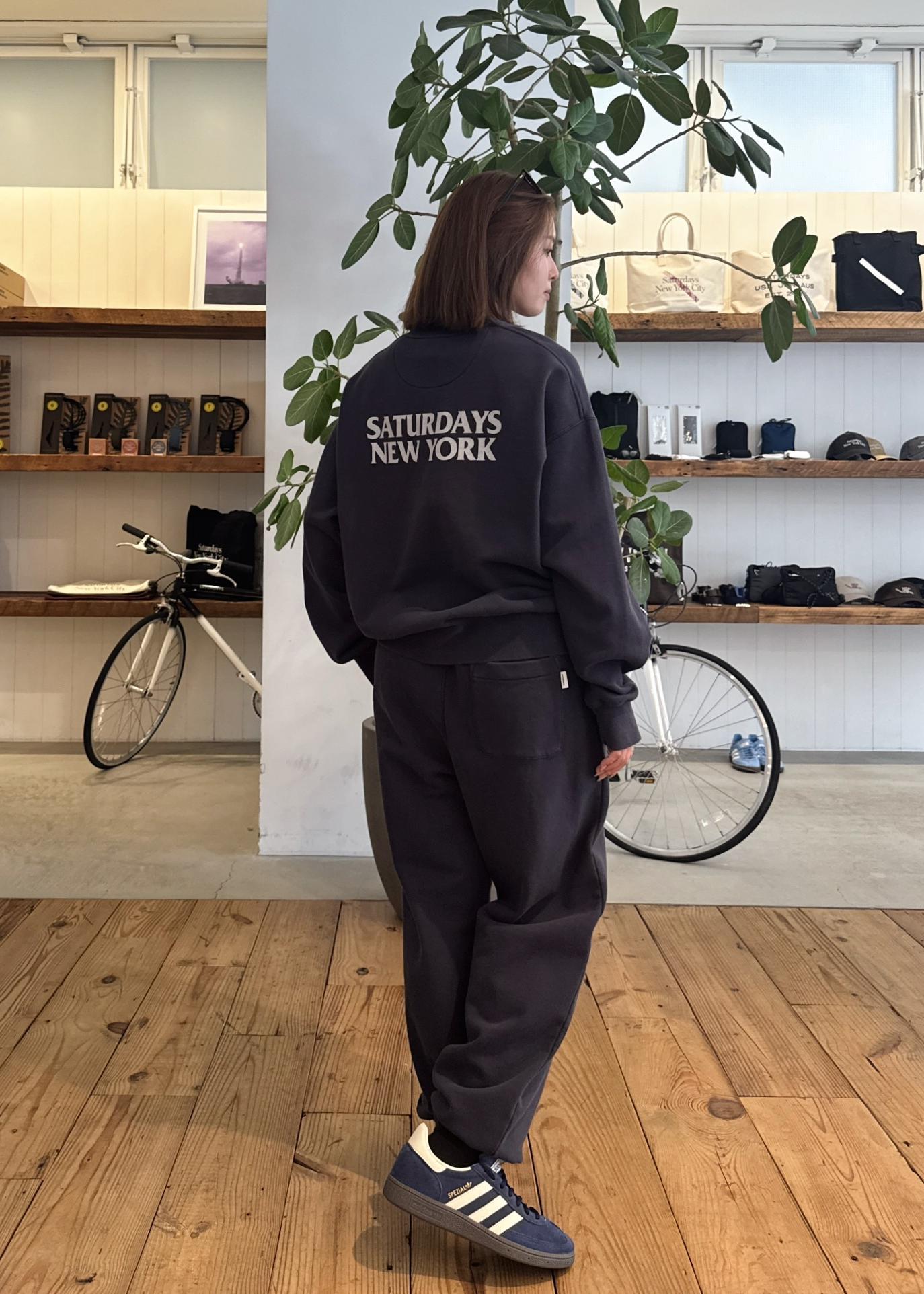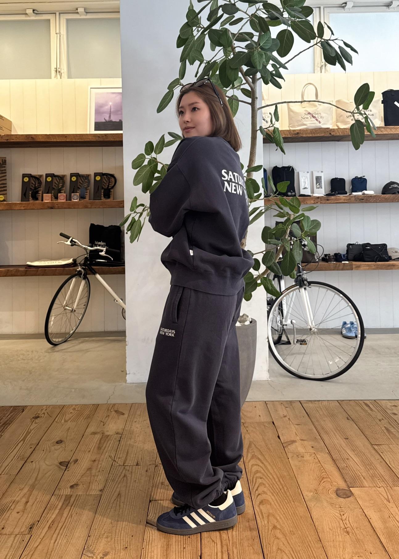 コットン裏毛素材にオゾンウォッシュ加工を施しています!裾はリブ仕様でスポーティーな印象になり、シーズナルロゴプリントも入っています!