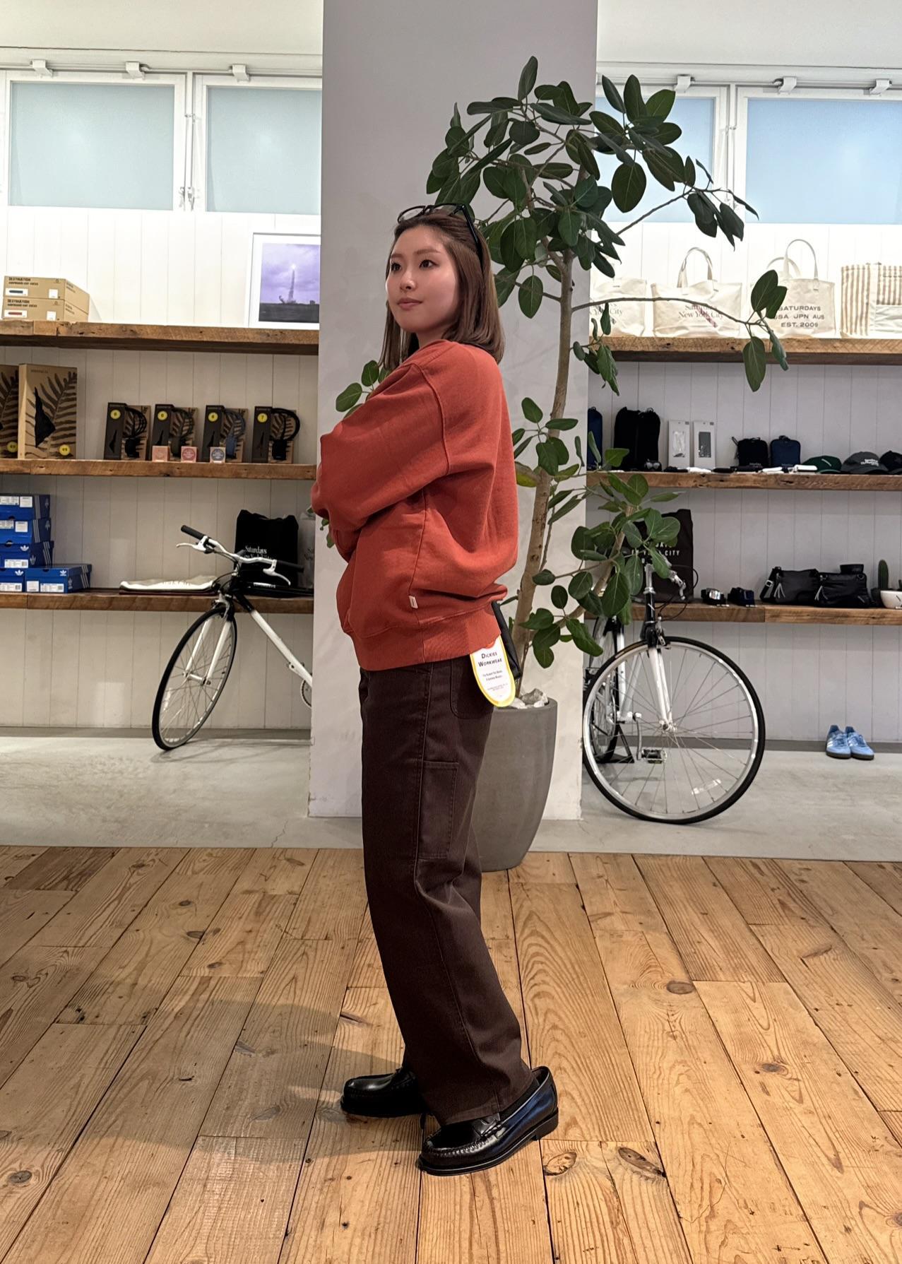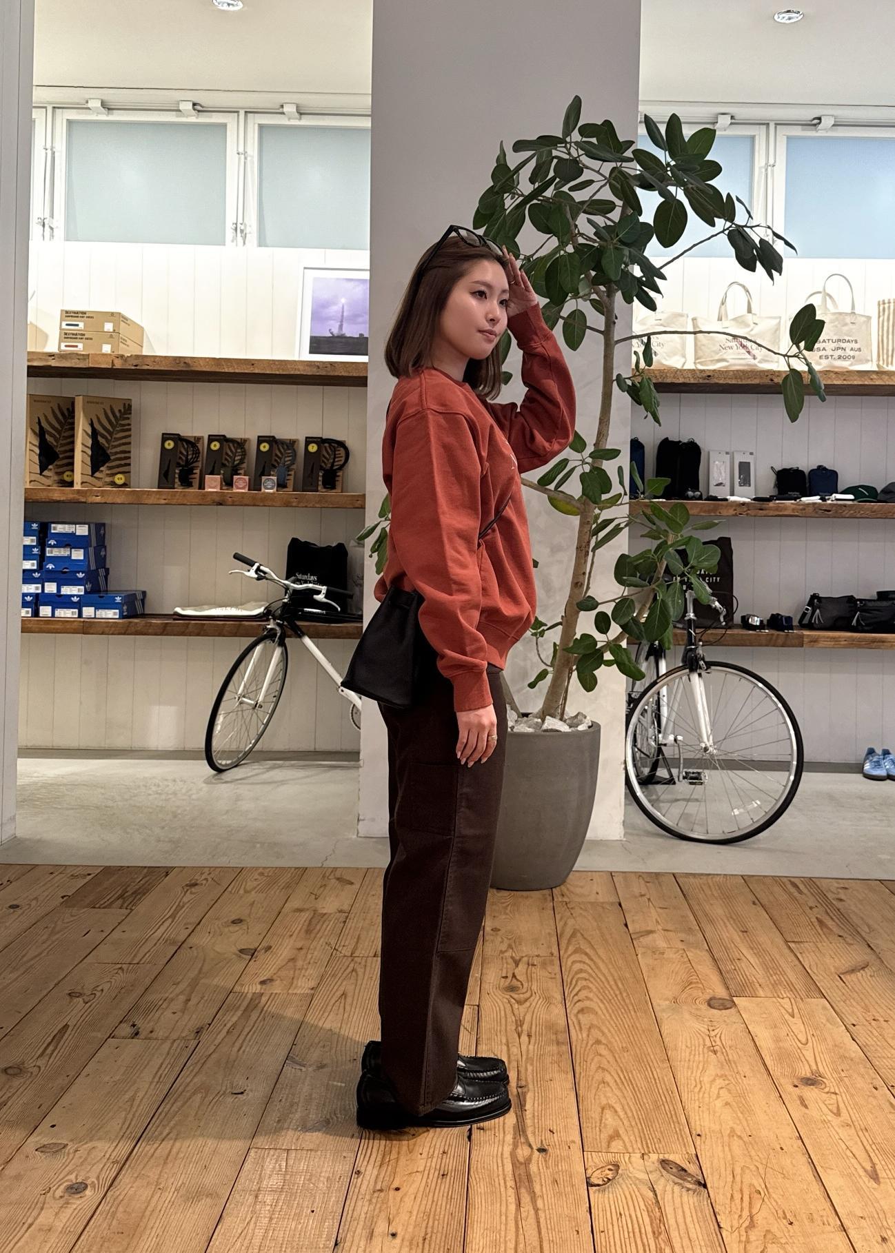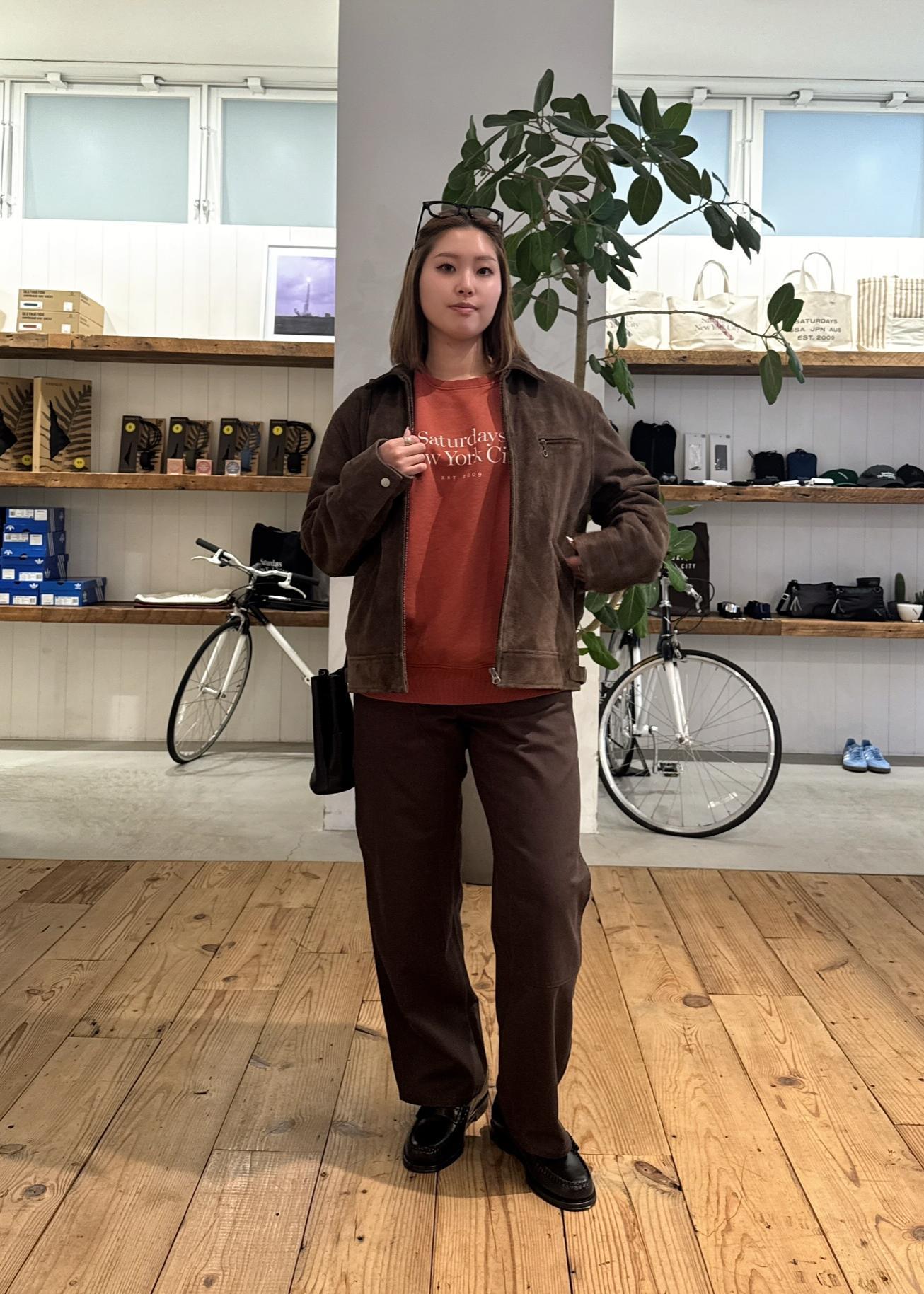 Saturdays NYC定番のミラスタロゴスウェットを主役に、ブラウンで統一した大人のワントーンスタイル。