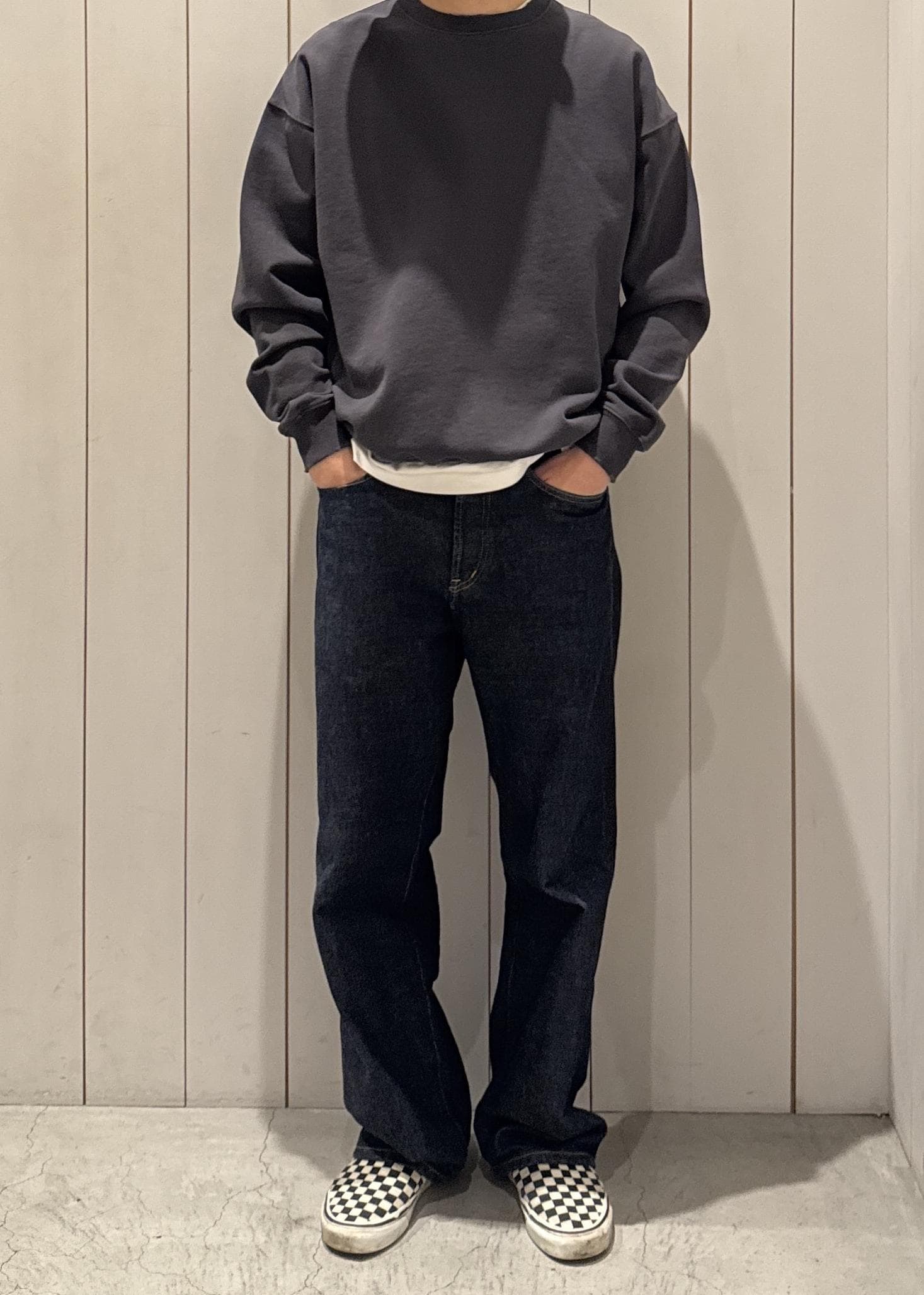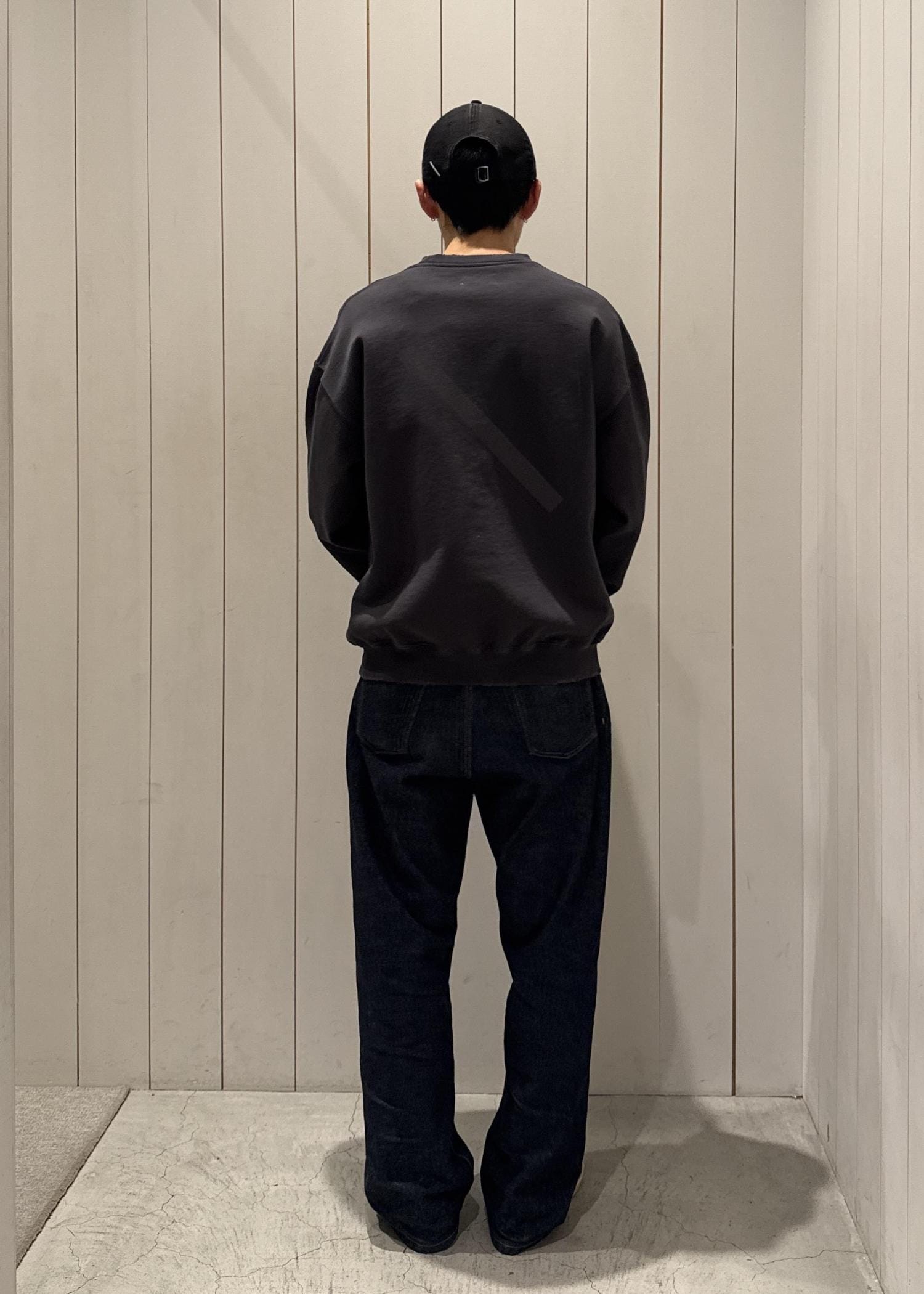 加工感が特徴的なクルーネックスウェットです。