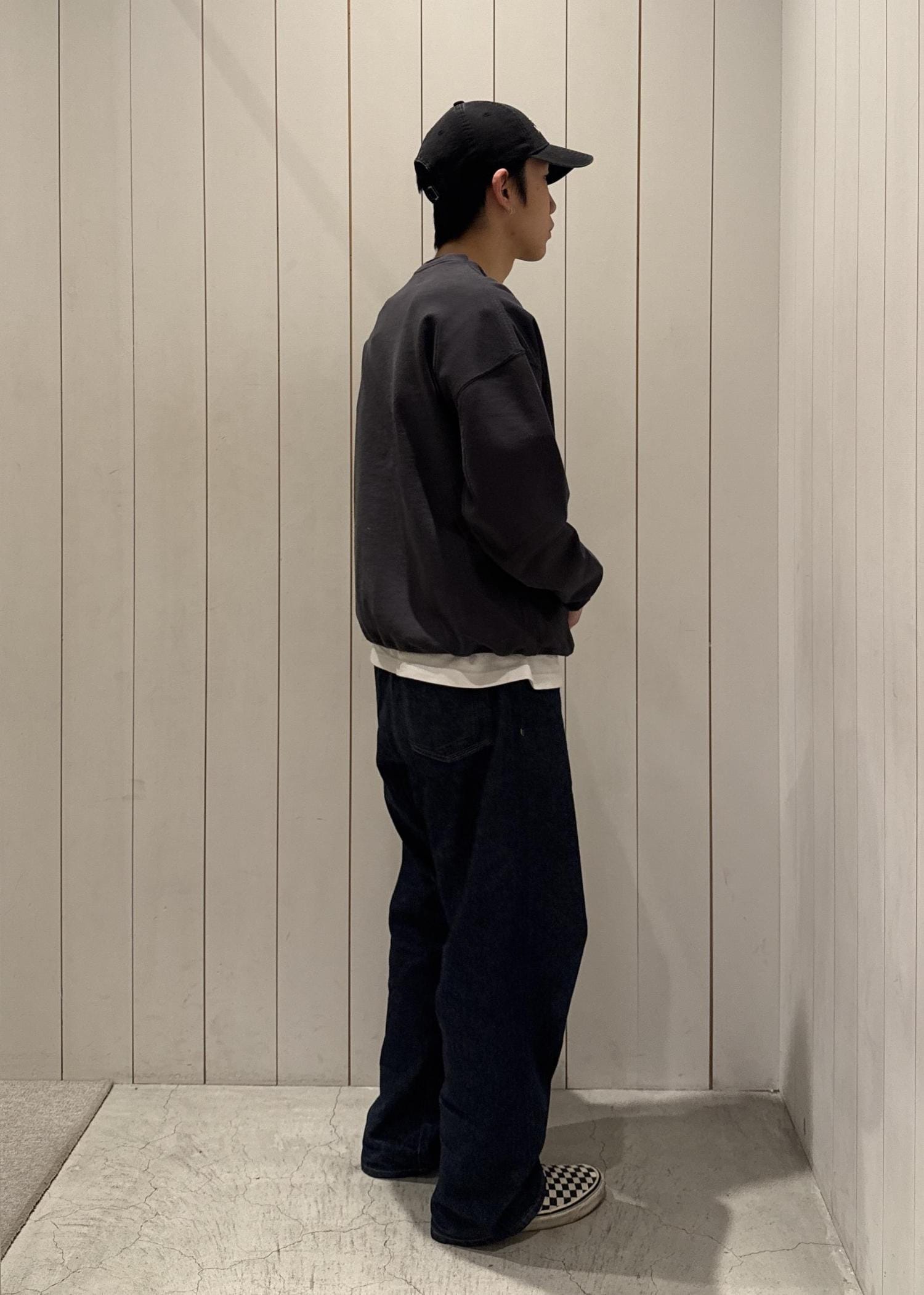 ヴィンテージデニムから着想を得たストレート型のシルエットで絶妙な丈感と加工が大人のデザインになっています。
