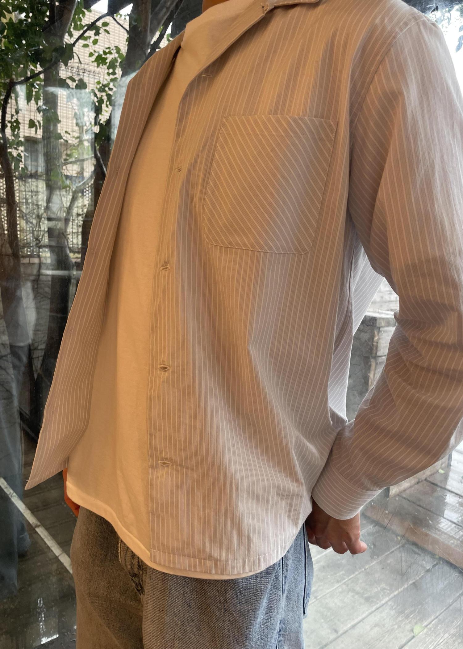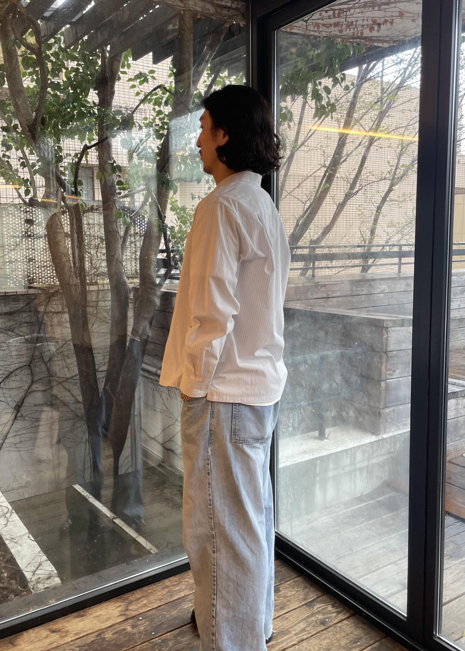 ストライプ柄のシャツで、爽やかな印象があるアイテムなので、万人受けもありますし、どんなスタイリングにも使いやすい一品です!