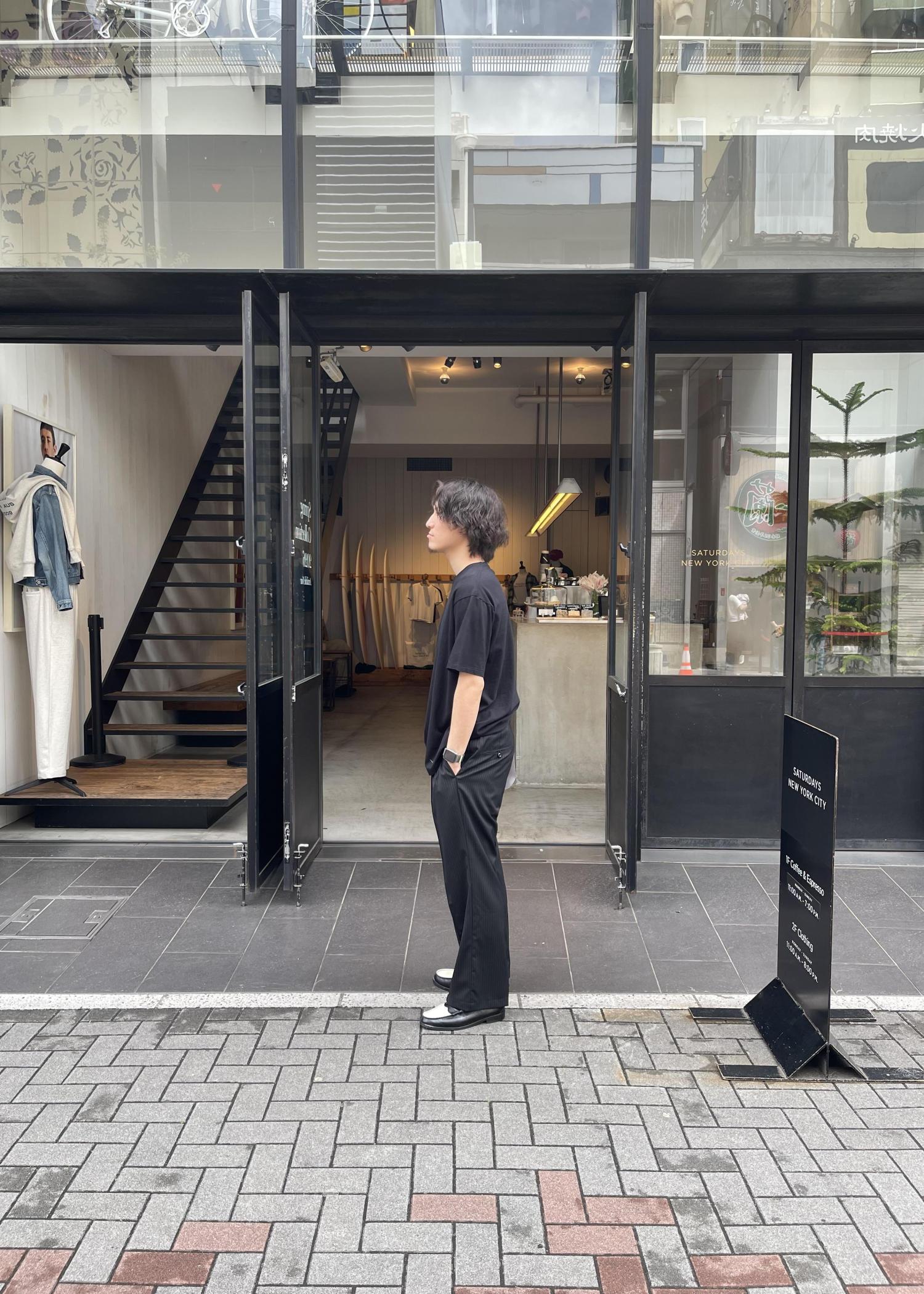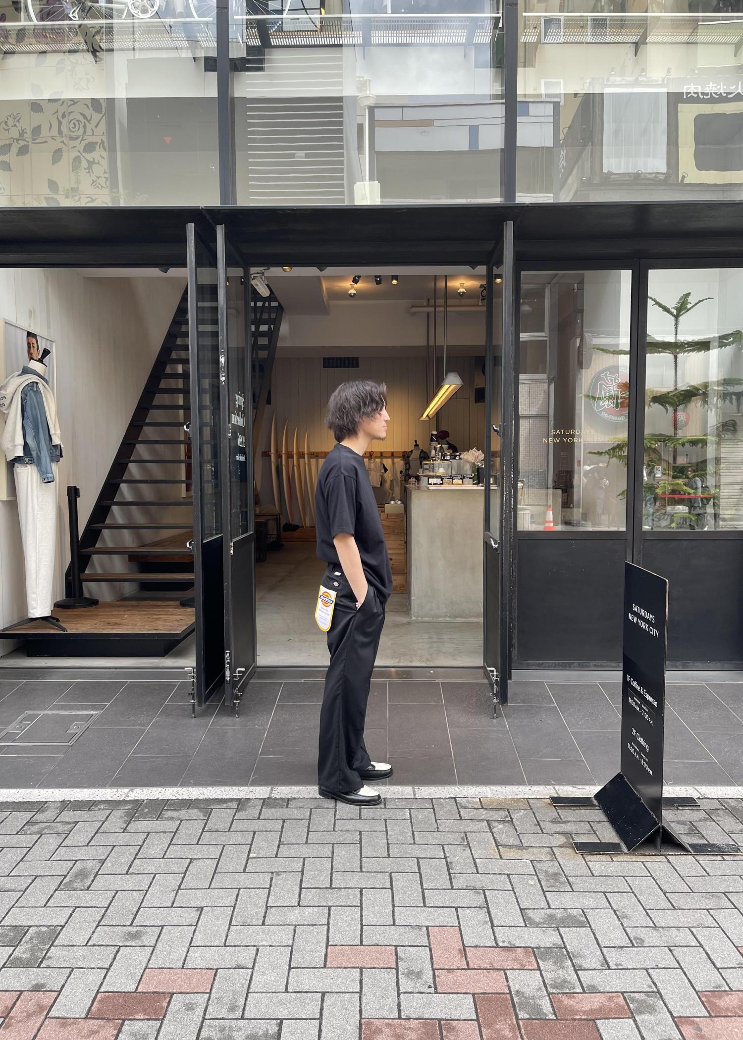 今回は、Dickiesコラボのスラックスにローファーでかなりシンプルながらストライプ柄でかっこよく!