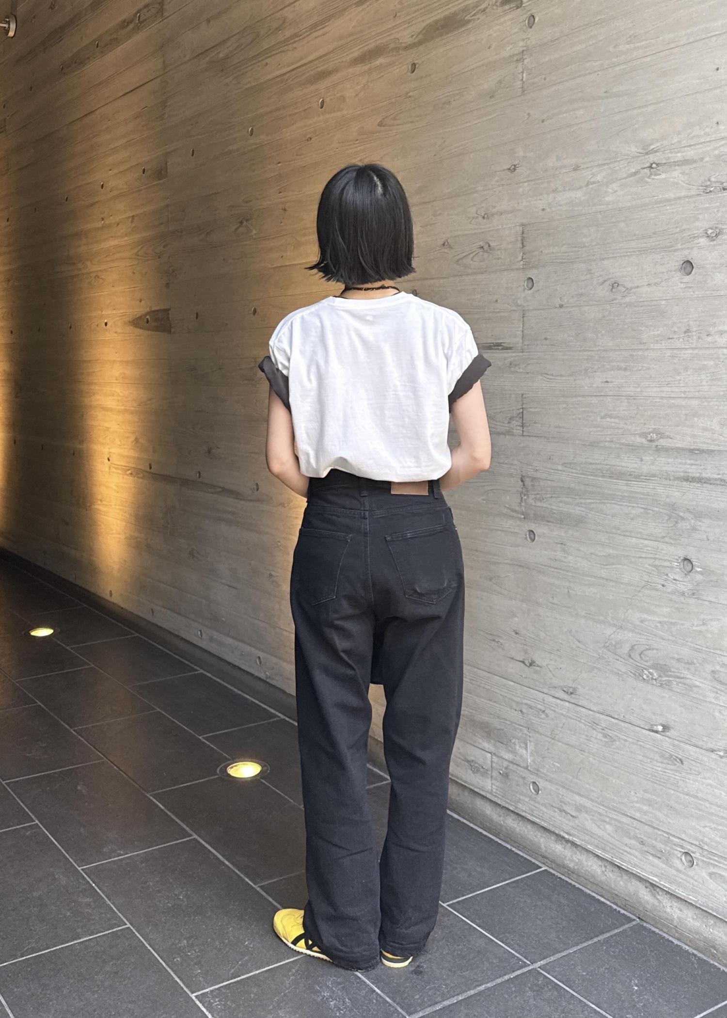 袖をロールし肌の露出を増やし女性らしい雰囲気に。