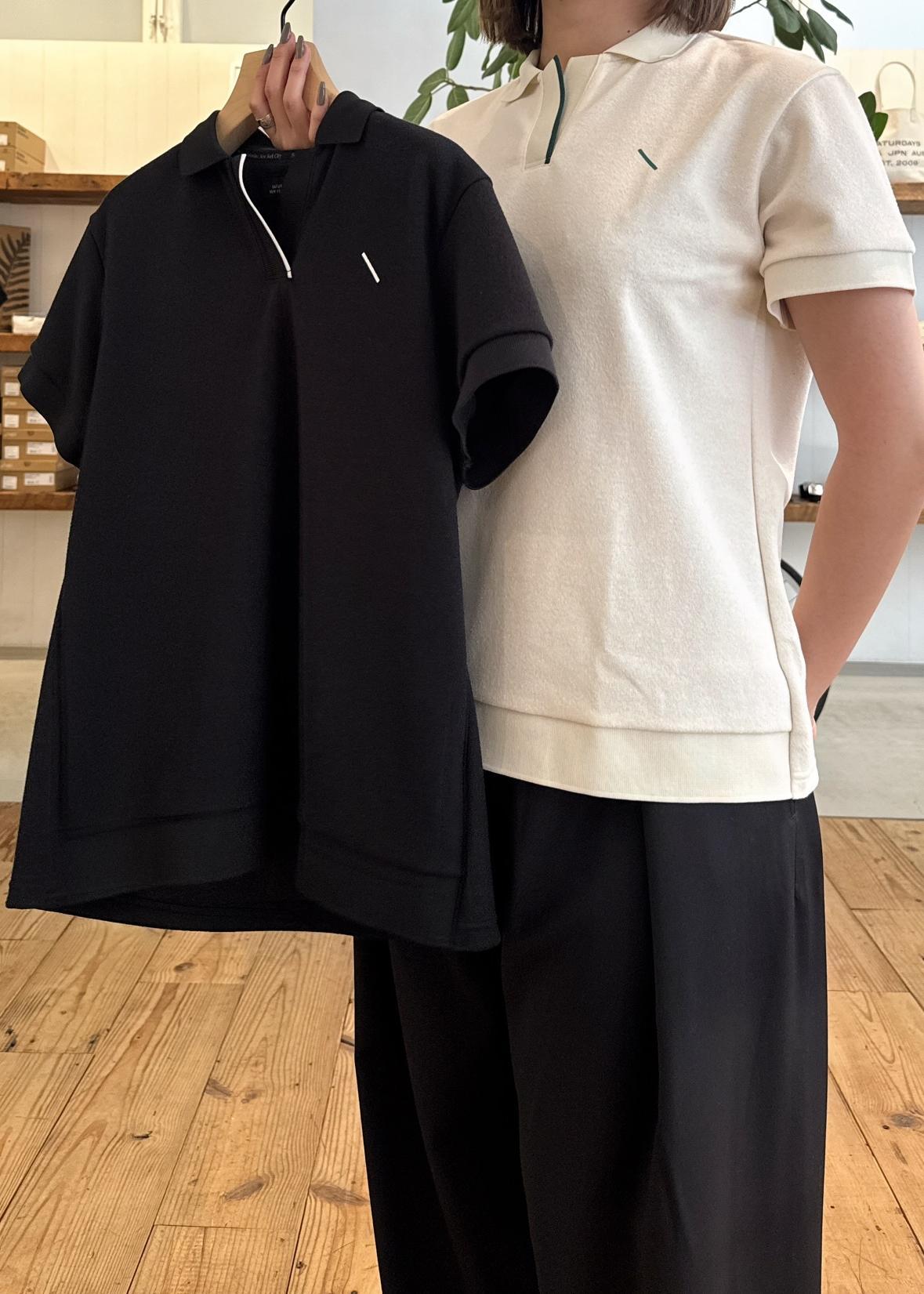 適度なハリ感とストレッチ性のある素材で、動きやすさと上品さを両立したスキッパー仕様のトップスは、スポーティーながらも洗練された印象に。