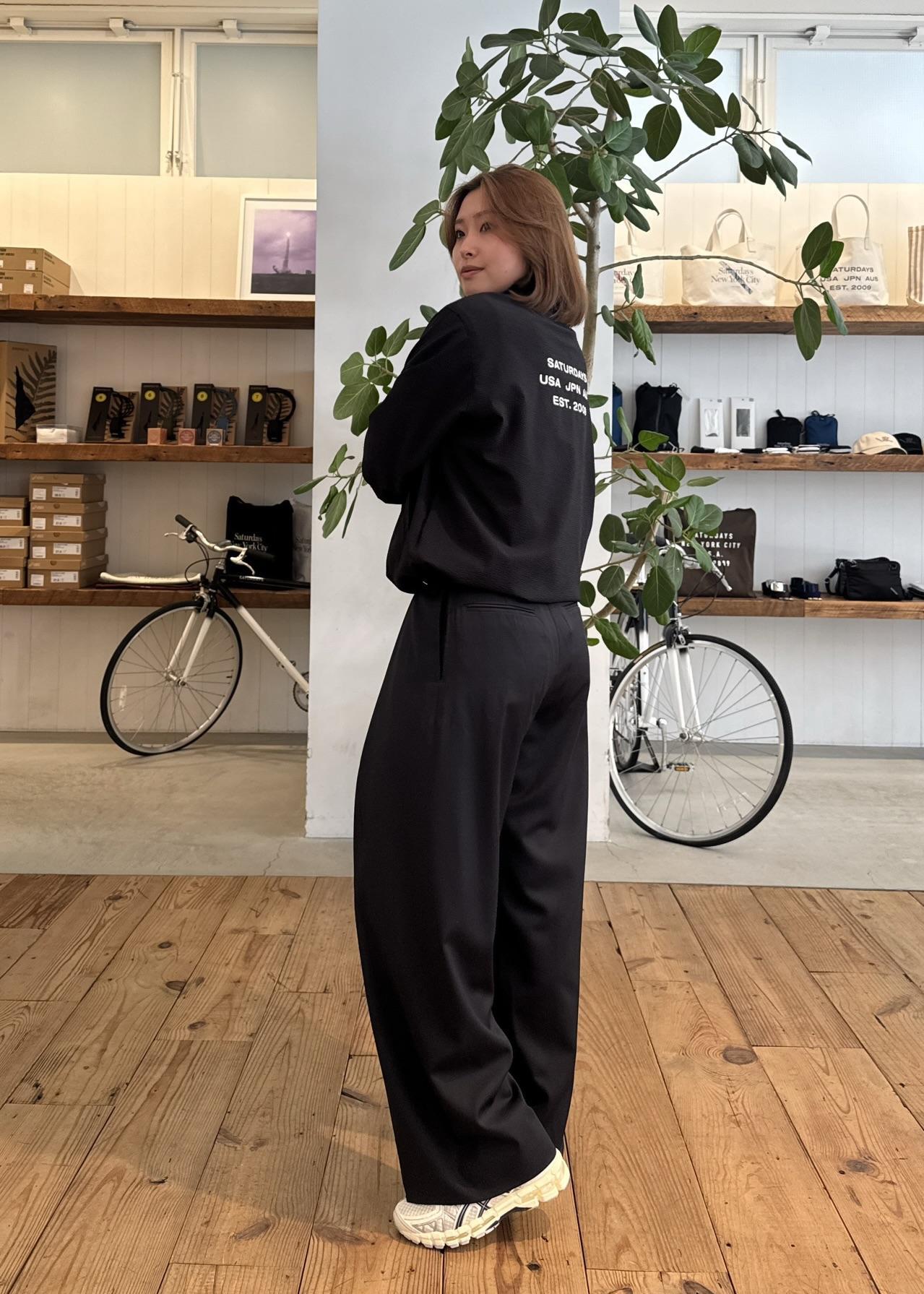 落ち感のある素材とワイドシルエットが特徴の一本。