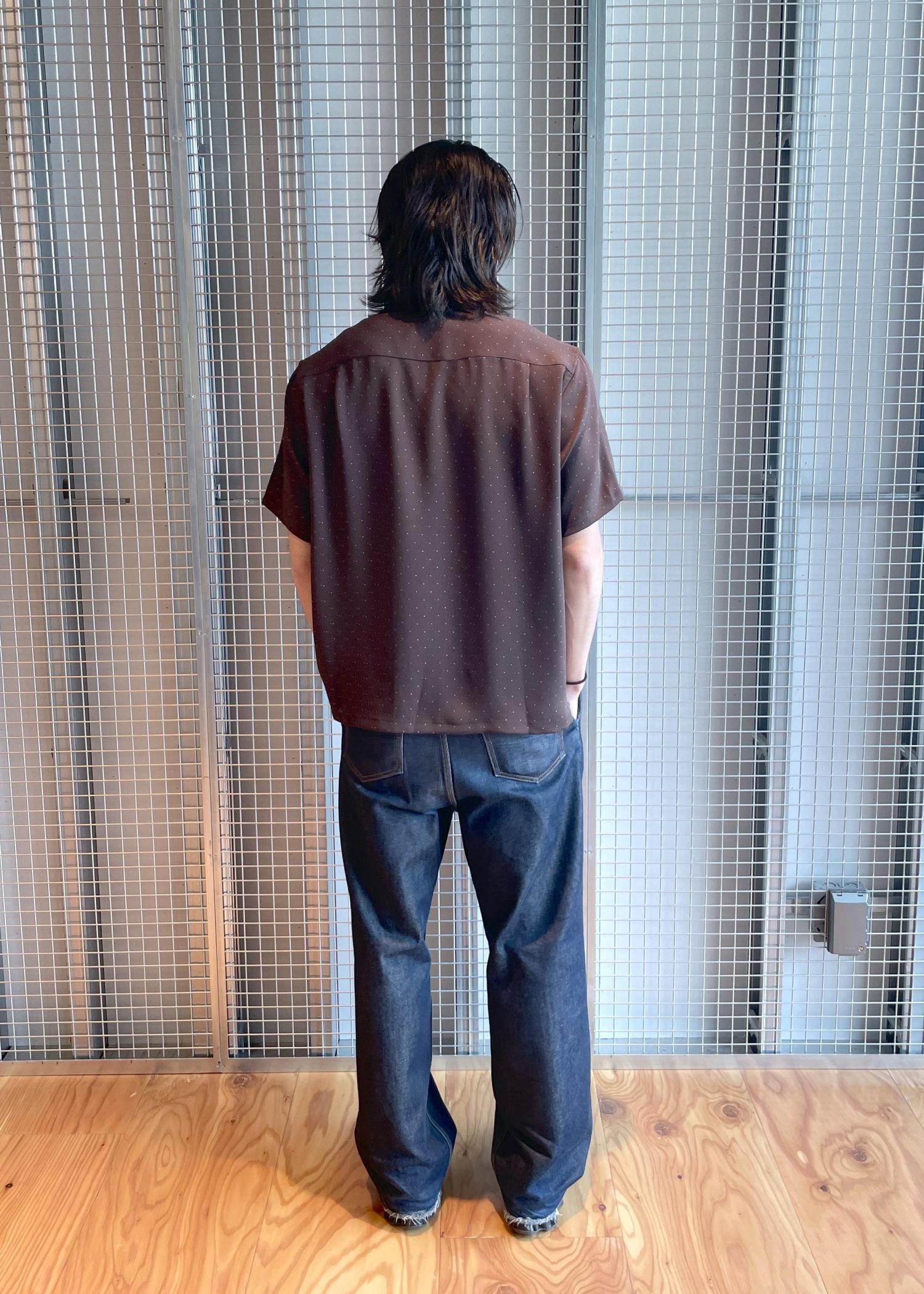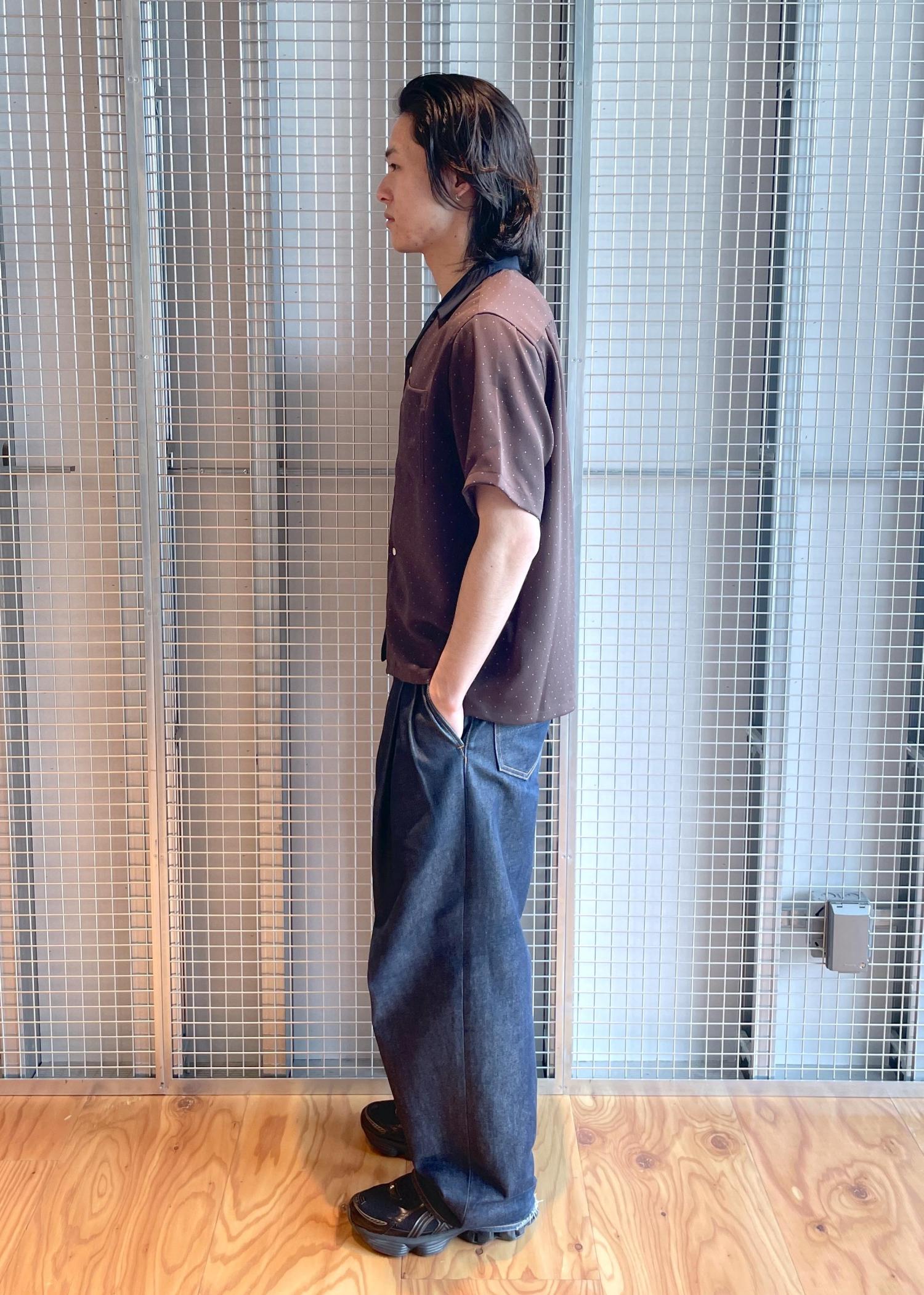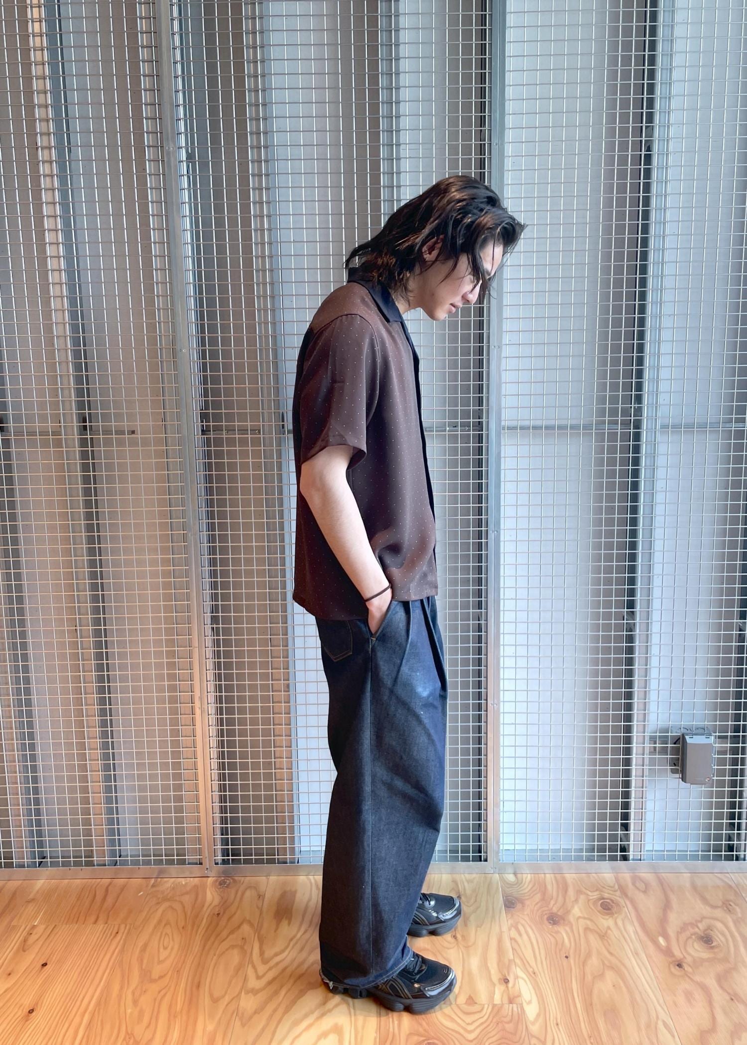 柄を活かしたミニマルなデザインではあるものの、衿と見返しの配色に遊び心を感じるデザインになっています。