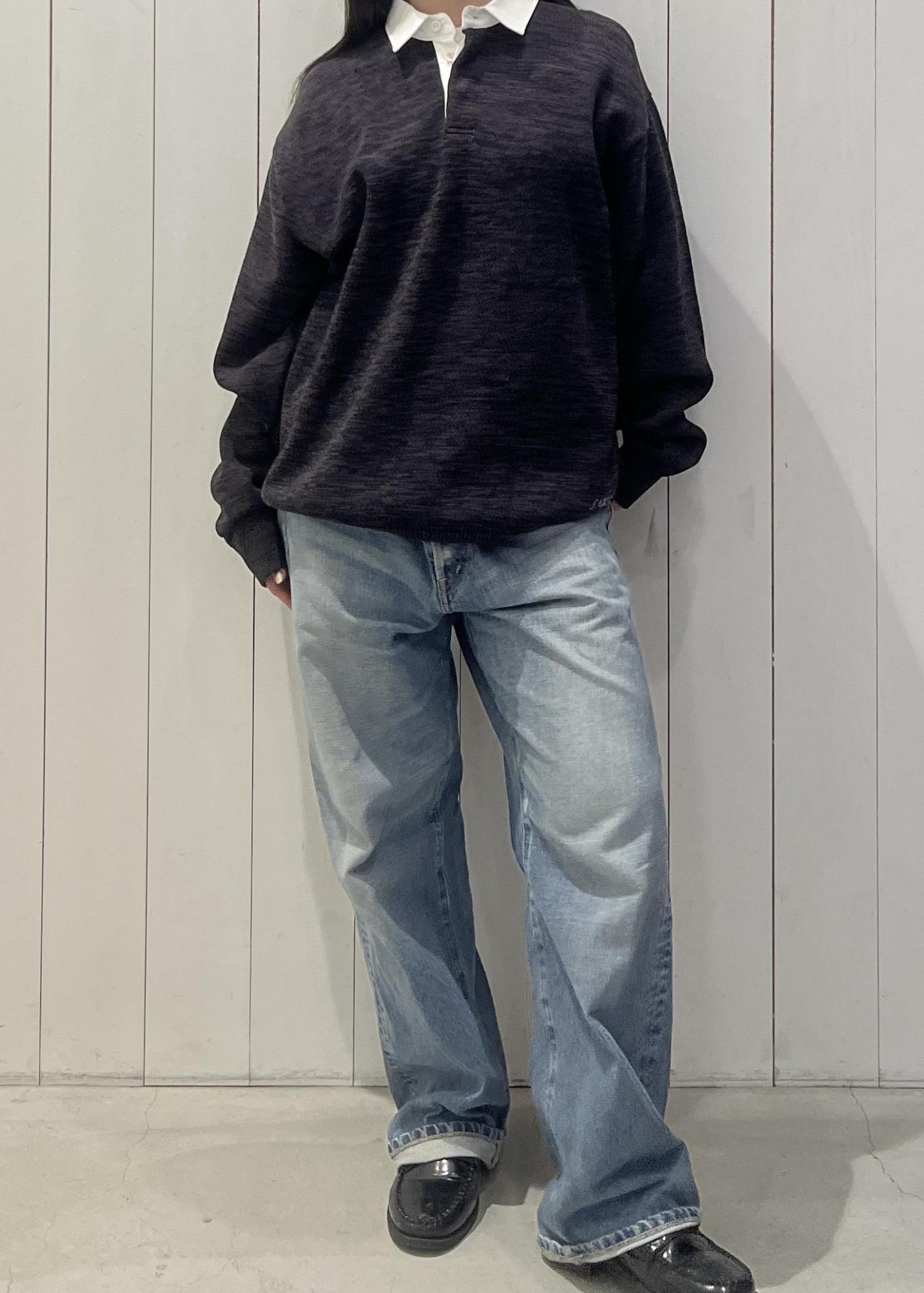 クラシックでありながらトレンド感のあるラガーシャツをニットで表現しました。