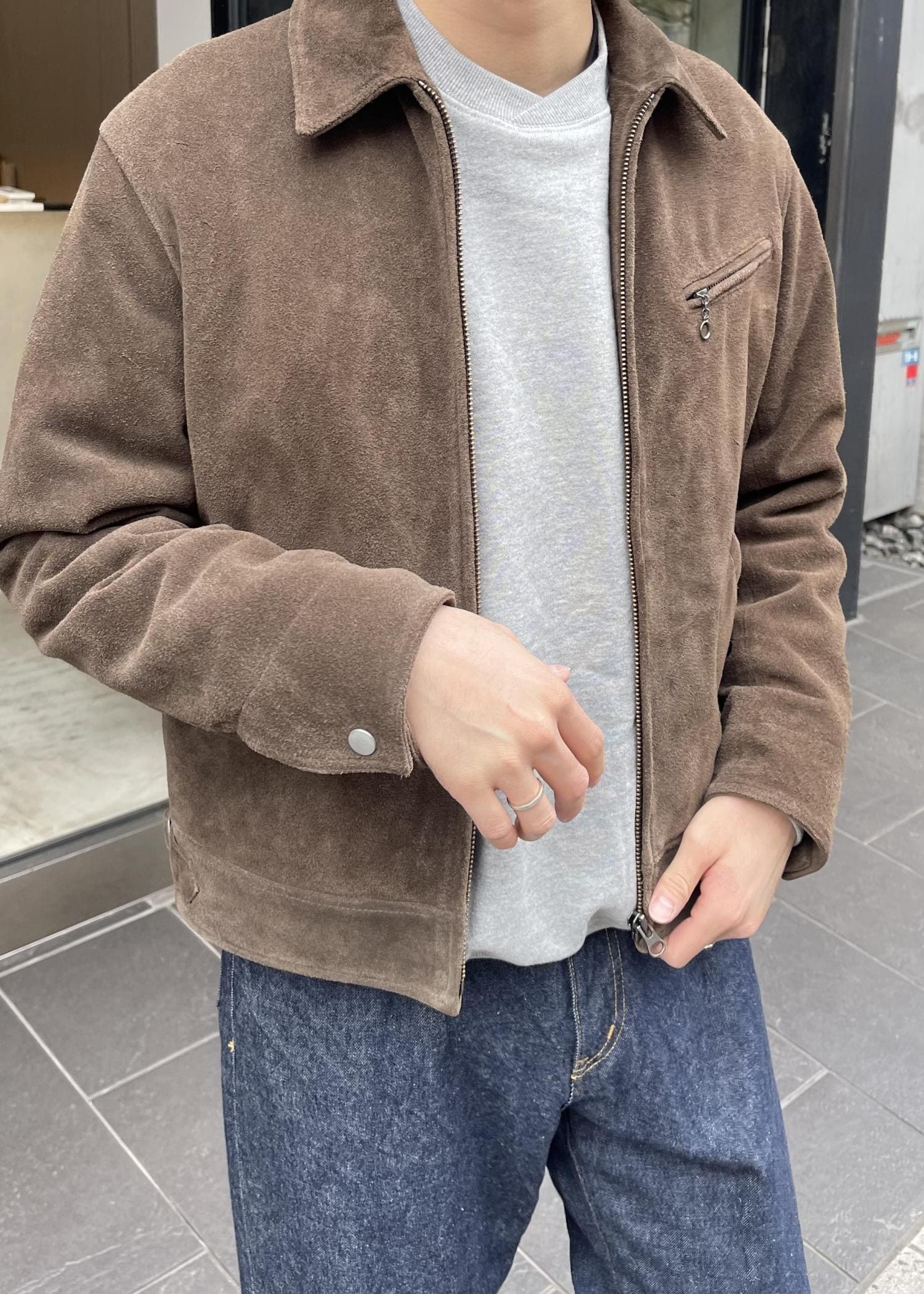 今回、着回しに使ったアイテムはスエードレザージャケットです!