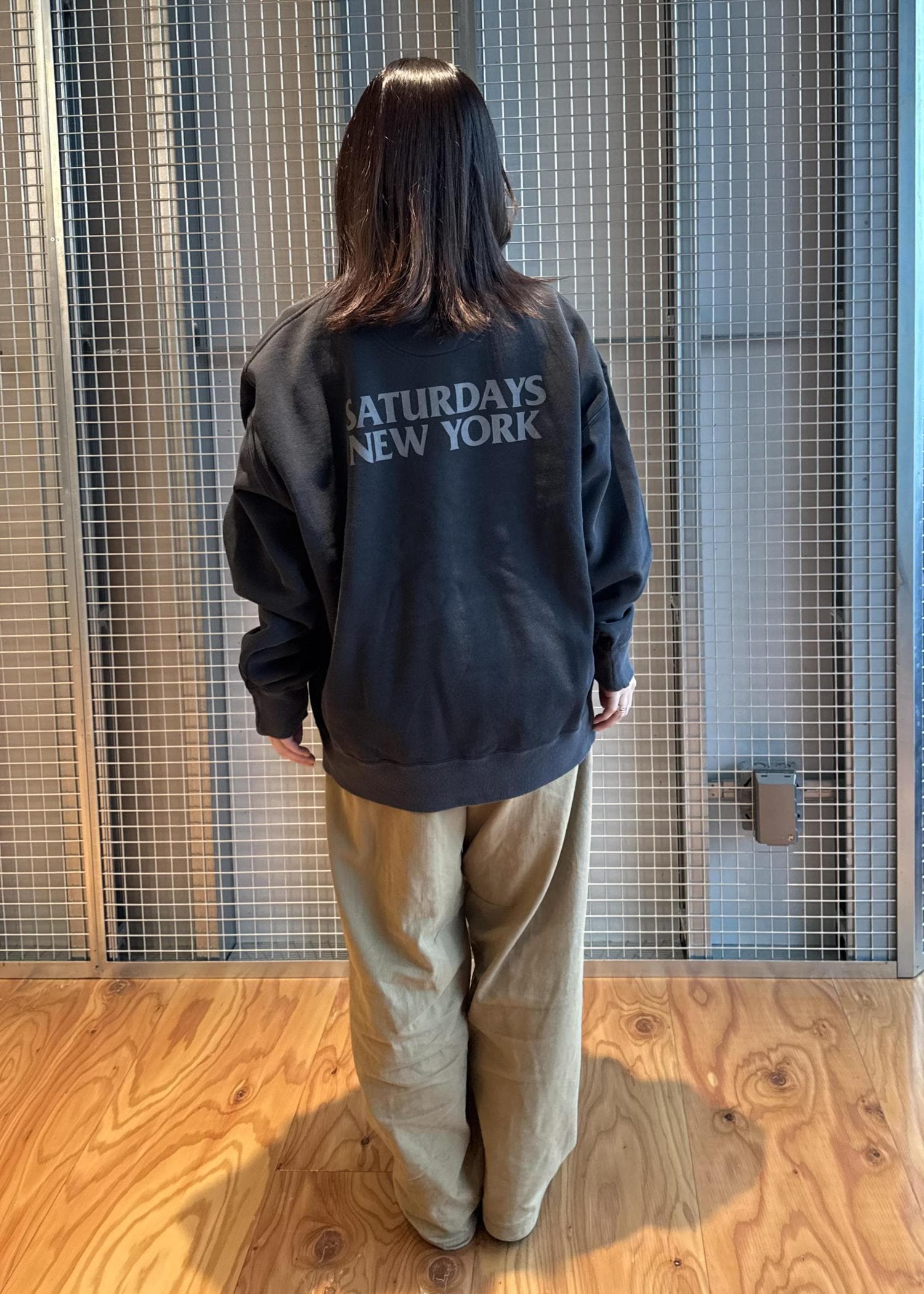 バックのSaturdaysシーズナルロゴプリントが程よいアクセントに◎