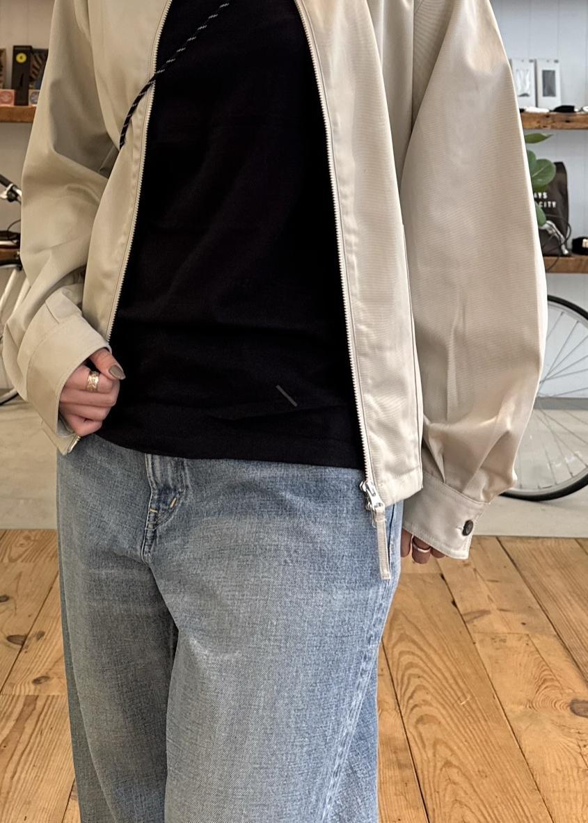 また、上品な素材感のワークブルゾンを羽織ることで、ラフすぎずバランスの取れた印象に。