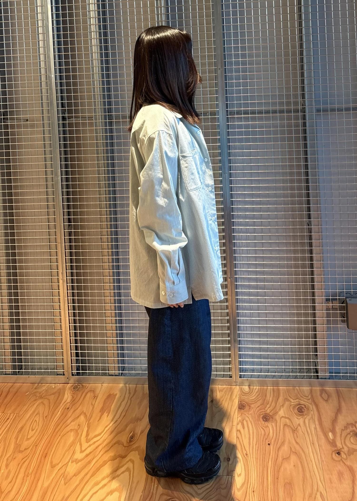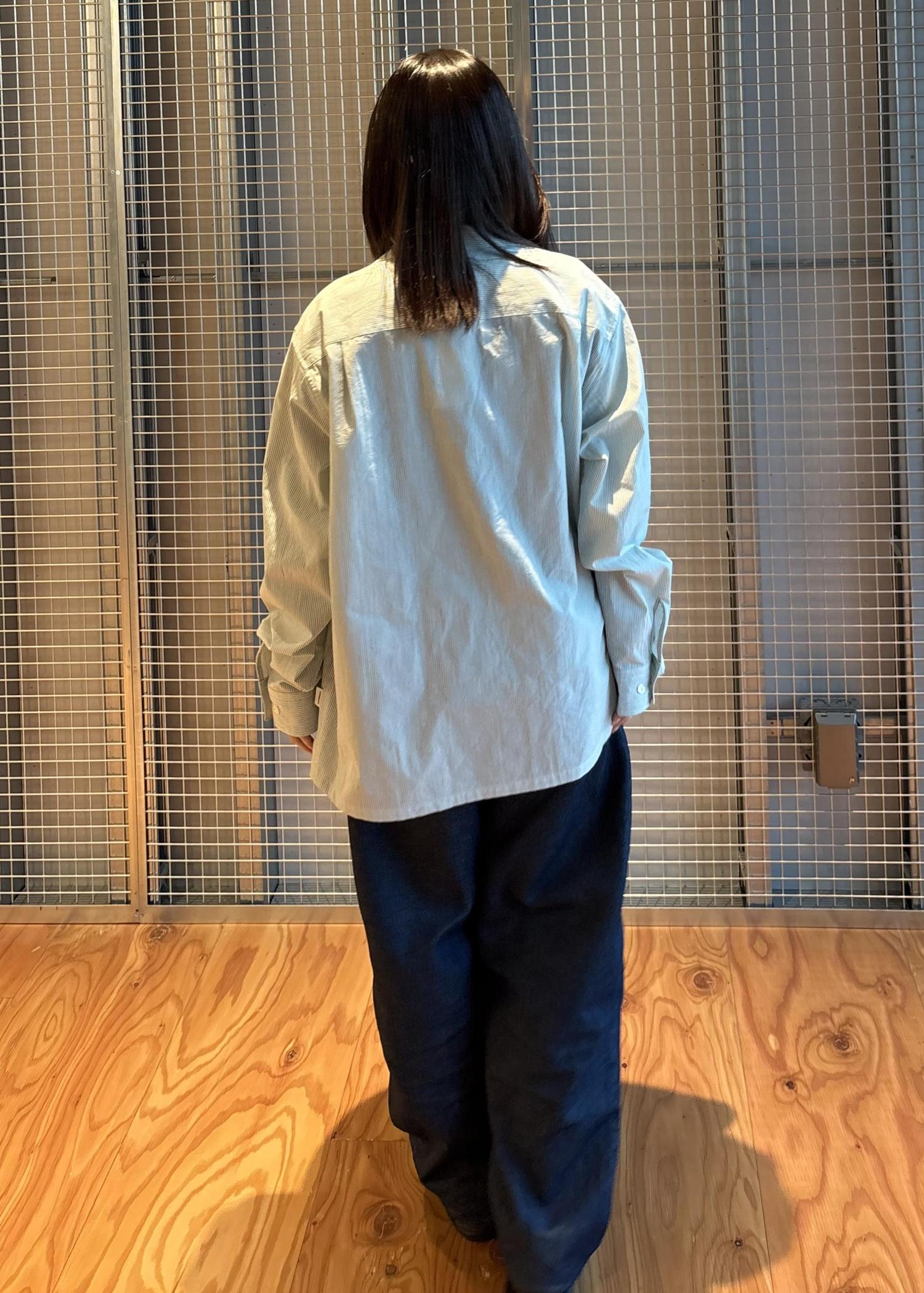 素材感と落ち着いた配色のストライプ柄を活かした、